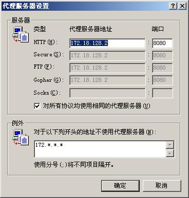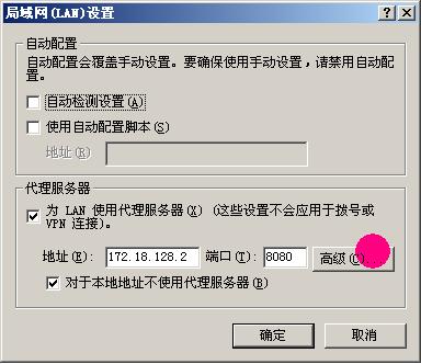 (3)代理服務(wù)器地址:172.18.128.2 端口:8080      點高級