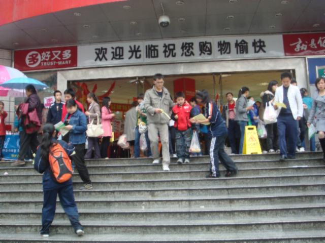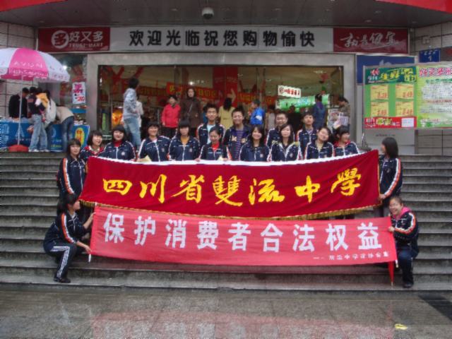 為走出校園、接觸社會(huì)、服務(wù)社會(huì)、鍛煉自己,3.15日下午,雙流中學(xué)青少年志愿者協(xié)會(huì)近20名同學(xué)放學(xué)后自發(fā)組織,在老師的帶領(lǐng)下,在大型商場外向人們宣傳消費(fèi)方面的一些法律法規(guī)和生活百科知識(shí)。經(jīng)過2小時(shí)的努力,近5000分消費(fèi)百科知識(shí)傳單和500本《條例》就所剩無幾。