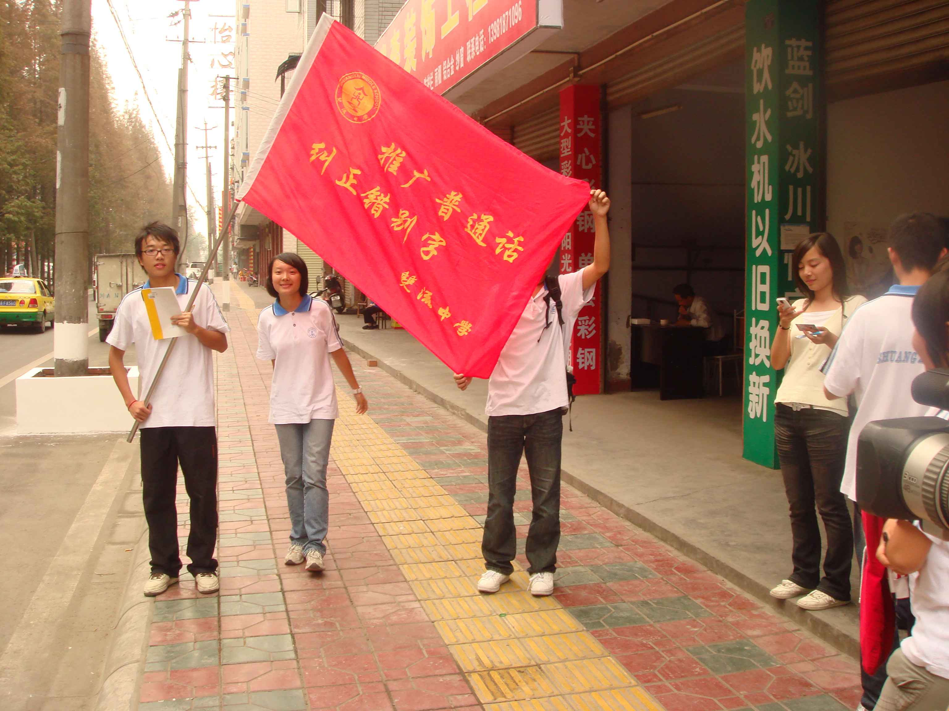 為了深入宣傳《中華人民共和國(guó)國(guó)家通用語言文字法》《成都市語言文字管理暫行規(guī)定》通過多種形式全面提高我校師生語言規(guī)范意識(shí)和推普參與意識(shí),努力創(chuàng)建“人文奧運(yùn)”相適應(yīng)的人文和語言文字環(huán)境。雙流中學(xué)特舉辦“推廣普通話宣傳周” 活動(dòng)。秉著“構(gòu)建和諧社會(huì),營(yíng)造共精神家園”的宗旨,繼學(xué)校開展了“說普通話、寫規(guī)范字、做文明人”的主題班會(huì)活動(dòng)等一系列工作并取得了良好的反響后,我們又組織了一次“糾正錯(cuò)別字推廣普通話”行動(dòng)。