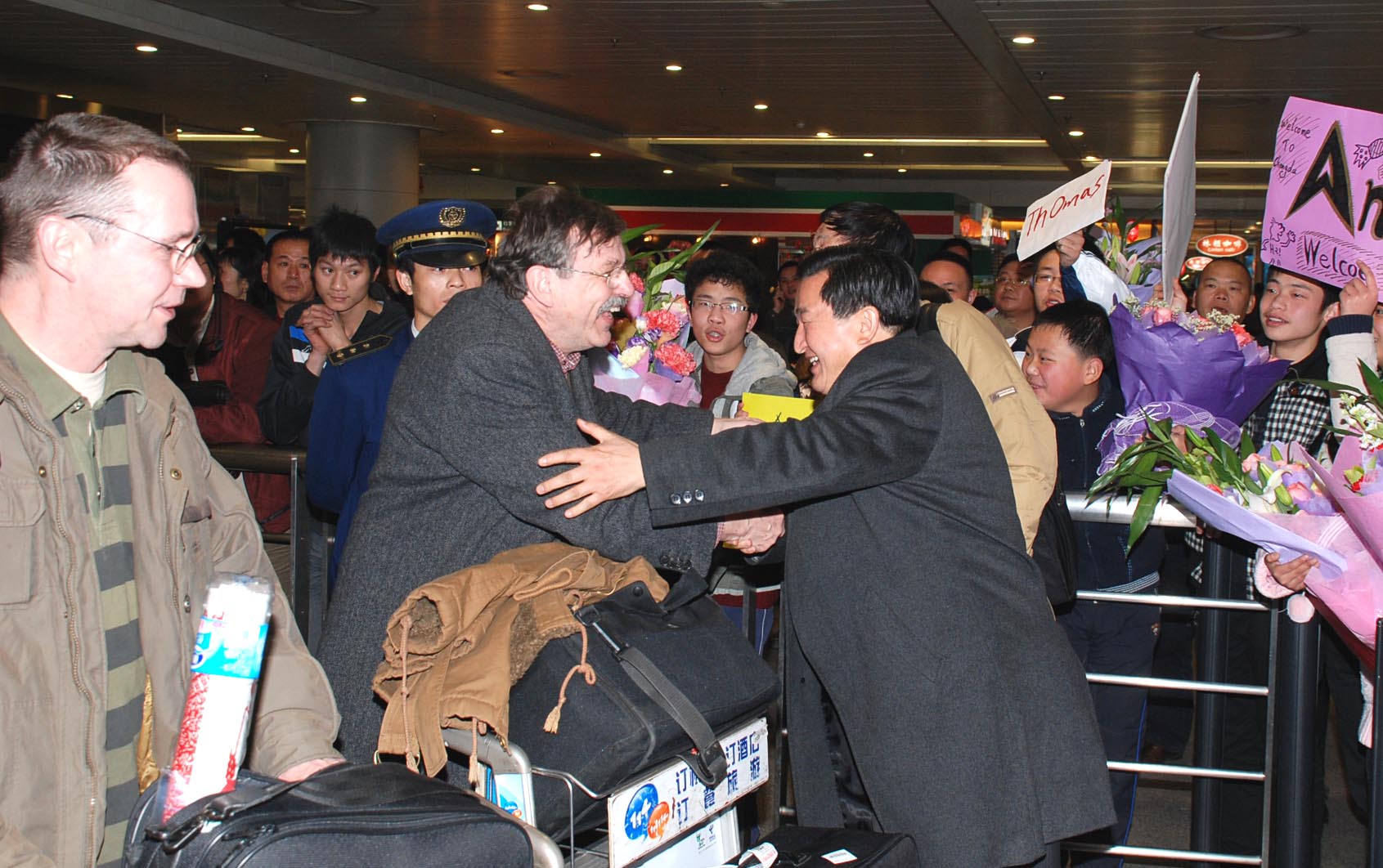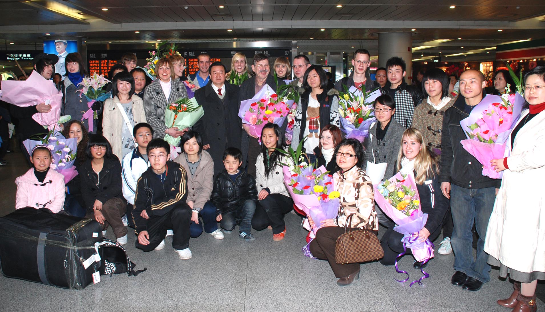 代表團(tuán)一行共18人,其中學(xué)生12人,他們分別是該校8——12年級(jí)的學(xué)生。當(dāng)他們走出雙流機(jī)場(chǎng)時(shí),受到由雙流中學(xué)任鳴鐘校長(zhǎng)、外事辦老師和負(fù)責(zé)這次接待的家庭的家長(zhǎng)和學(xué)生的熱烈歡迎。