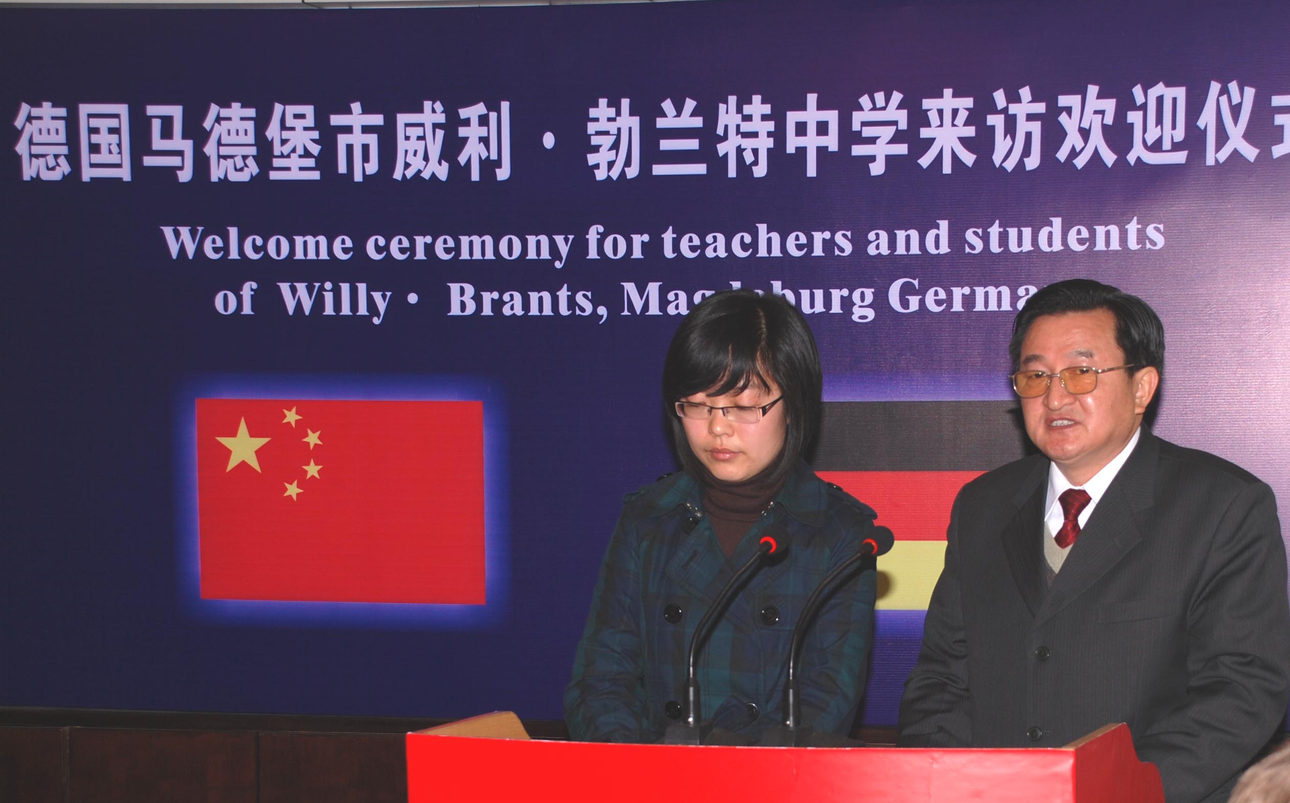 6日上午,在雙流中學(xué)舉行了隆重的歡迎儀式,在歡迎儀式上,雙流縣外事辦主任丁紅羽代表雙流縣政府對(duì)德國朋友的到來,表示熱烈的歡迎,并祝學(xué)習(xí)交流順利圓滿。任鳴鐘校長(zhǎng)致歡迎辭并回顧了前幾次交流所取得的成就。