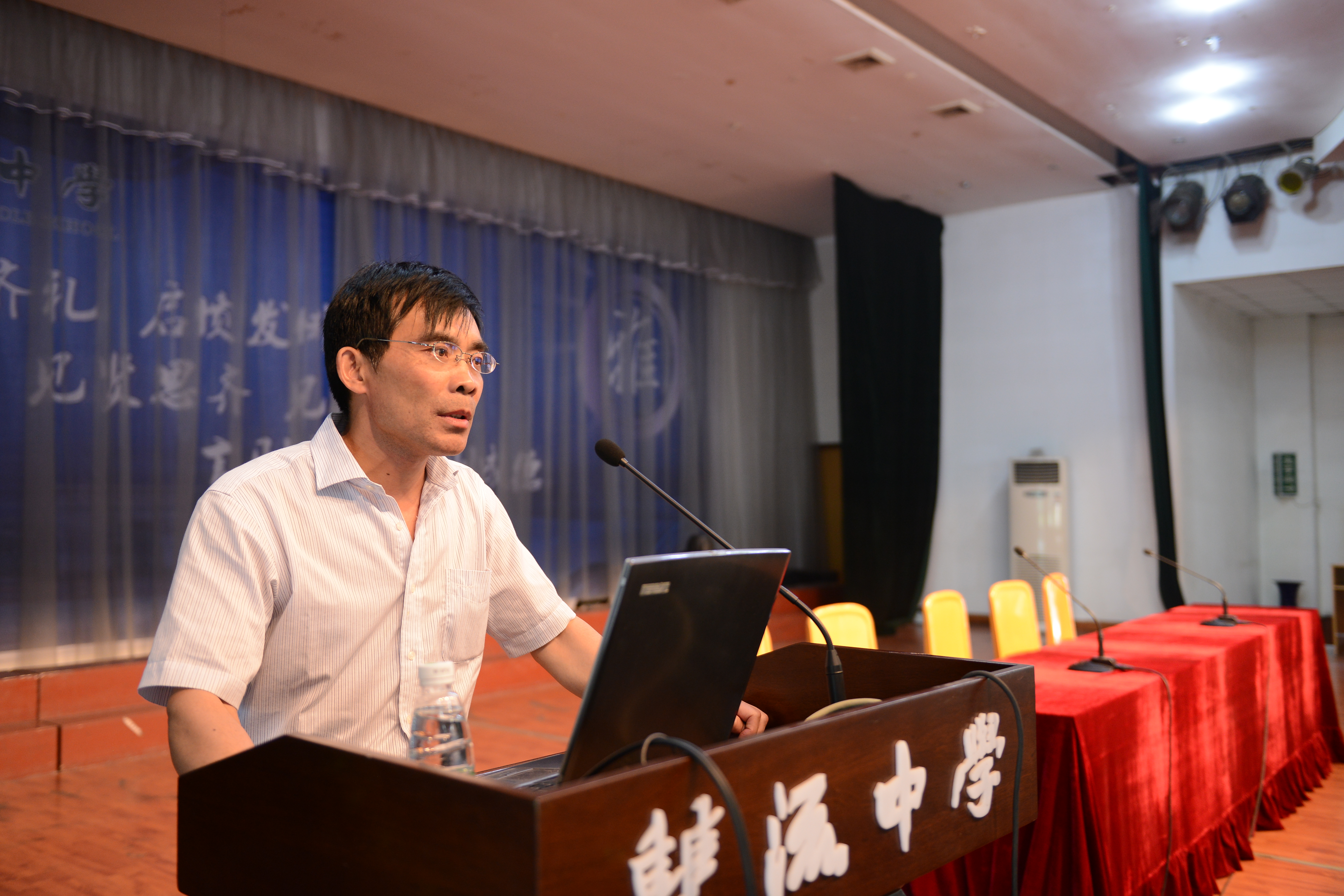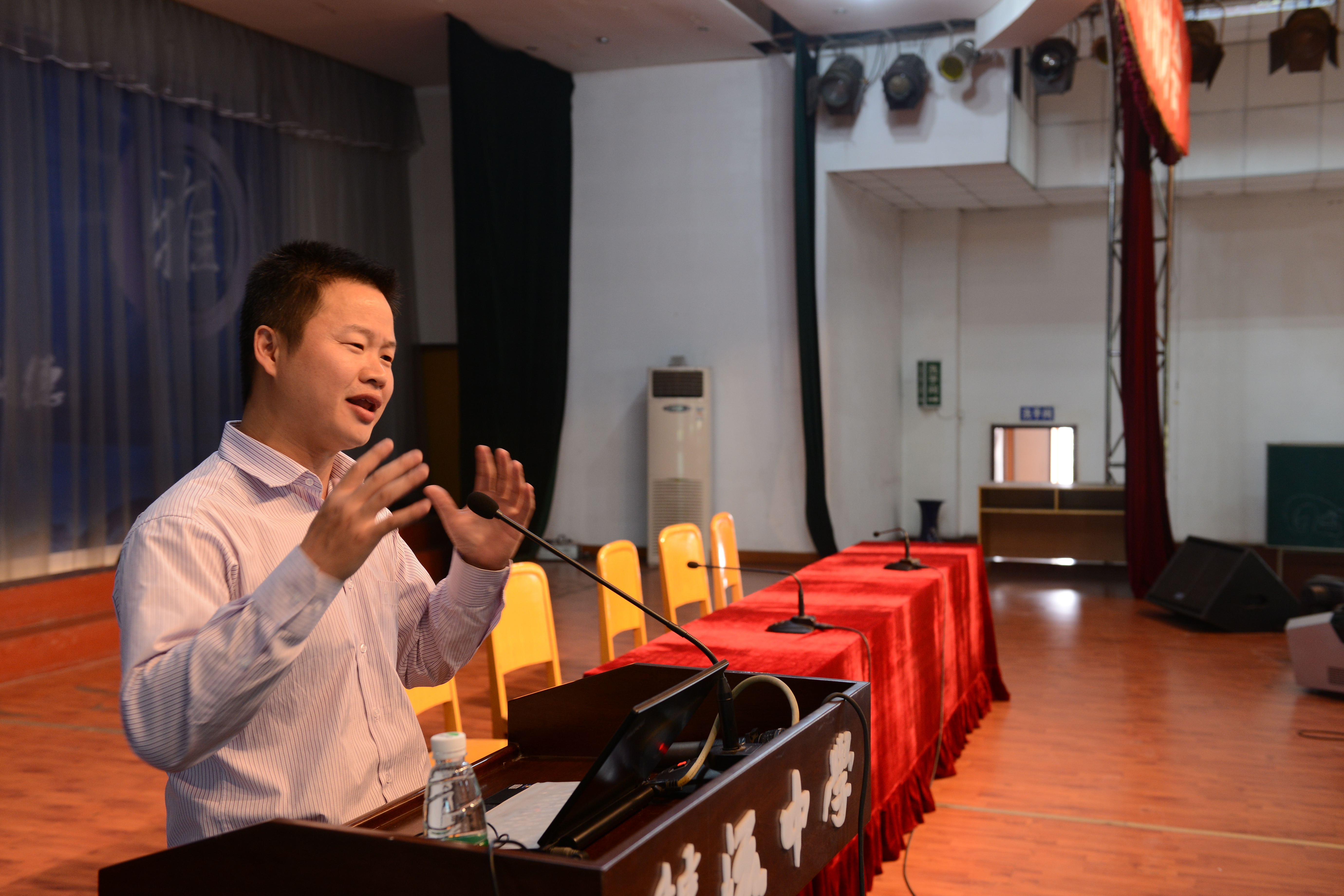 江西金太陽教育教科所所長柏成剛,為大家?guī)砹祟}為《化解教育千千結(jié)——打造高效課堂,追求教育成功》的精彩講座。他剖析了當(dāng)前學(xué)校課堂教學(xué)的各種誤區(qū),提出了打造高效課堂的有效策略,并指出:打造高效課堂的關(guān)鍵是教師的專業(yè)發(fā)展。柏成剛所長的講座充滿激情、幽默風(fēng)趣、深入淺出,會場上不時響起會心的笑聲和熱烈的掌聲。