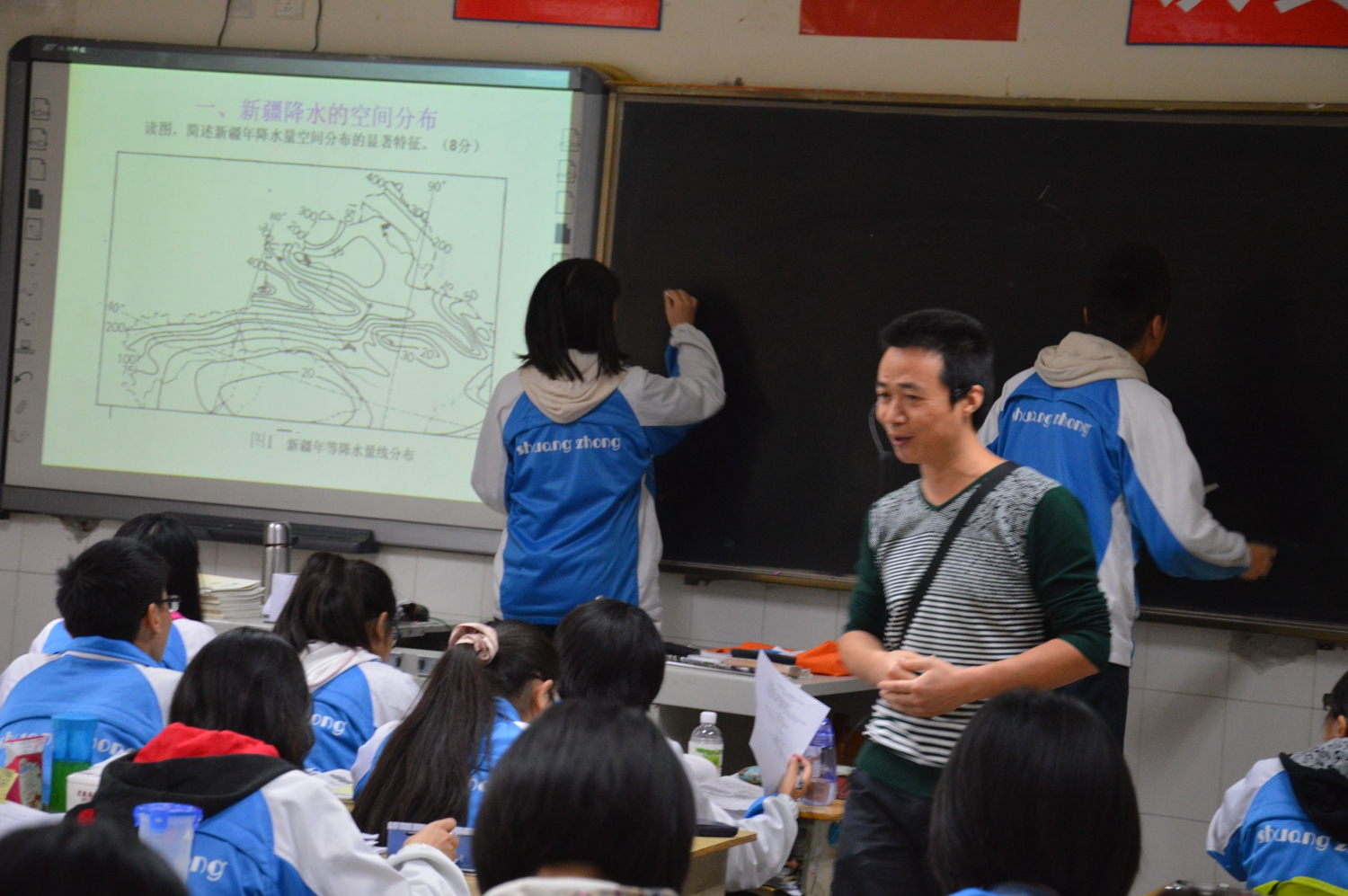 10月16日至18日,由成都市教育局主辦的高中地理骨干教師培訓(xùn),在青羊區(qū)教研員王勤老師的帶領(lǐng)下,18名成都市高中地理骨干教師,在我校進(jìn)行了為期三天的跟崗培訓(xùn)。10月16日上午,我校地理教師魏敏在高2013級(jí)1班呈現(xiàn)了一節(jié)內(nèi)容為“熱力環(huán)流”的市級(jí)示范課,在課堂充分展示了我?!岸獙?dǎo)學(xué)”的高效課堂模式,得到了一致好評(píng)。之后由譙澤平老師做了“二元導(dǎo)學(xué)”實(shí)施方案的專題講座,使與會(huì)教師受益非淺。在17日和18日兩天時(shí)間內(nèi),包括我校教師譙澤平、陳梁、羅江濤在內(nèi)的18名市骨干教師都分別在高一、高二、高三年級(jí)借班上了一節(jié)示范課,受到了學(xué)生和到校教師的好評(píng)。