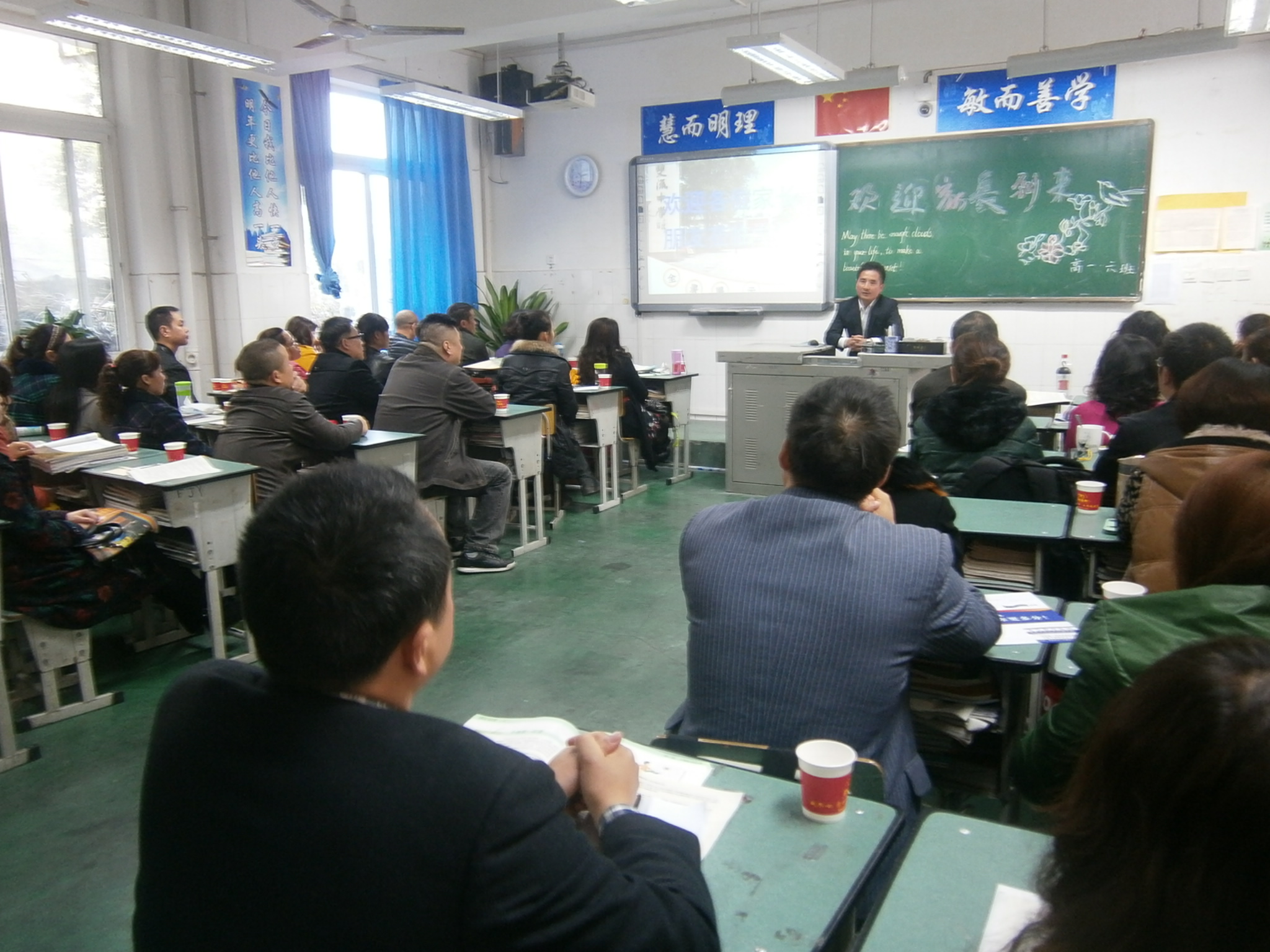 家長會(huì)的第二階段是在各班教室進(jìn)行,班主任和各班科任老師分別作了發(fā)言,介紹和反饋了同學(xué)們的學(xué)習(xí)表現(xiàn),并提出了學(xué)習(xí)要求和建議。教室里讓人振奮的勵(lì)志標(biāo)語、感恩的黑板報(bào)、美麗溫馨的花草布置,讓家長們驚訝感嘆不已,他們對(duì)自己的孩子也有了新的認(rèn)識(shí)。
