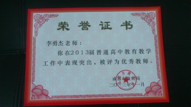 雙流中學(xué)教師李勇杰、曹軍才、姚光橋、金兵、魏敏在2013屆普通高中教育教學(xué)中表現(xiàn)突出,被成都市教育局評為“優(yōu)秀教師”,特此通報(bào)。