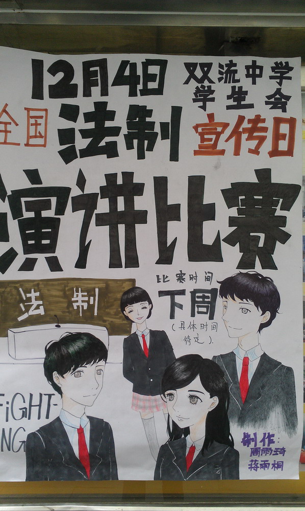 2013年12月4日是全國法制宣傳日,為了加強(qiáng)中學(xué)生法制教育宣傳工作,引導(dǎo)青少年學(xué)生學(xué)法、懂法、守法和用法,提高青少年學(xué)生法律意識,預(yù)防和減少青少年違法犯罪,促進(jìn)青少年健康成長,營造一個文明、健康、和諧的校園環(huán)境,雙流中學(xué)團(tuán)委以各種形式,積極組織開展了“大力弘揚(yáng)法制精神,共筑偉大中國夢”的主題教育活動?,F(xiàn)將本次活動總結(jié)如下:
