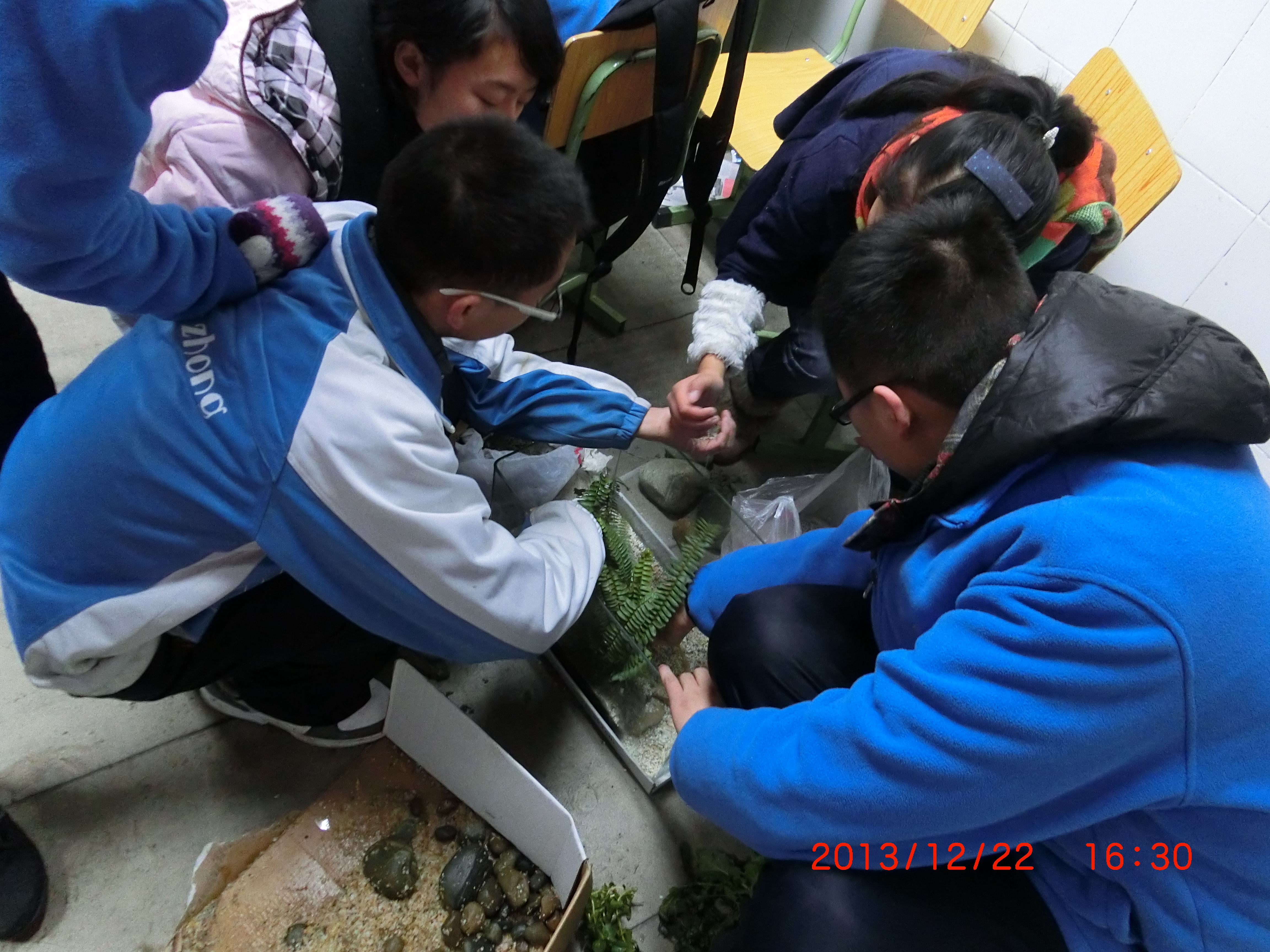 學(xué)生正在制作生態(tài)缸