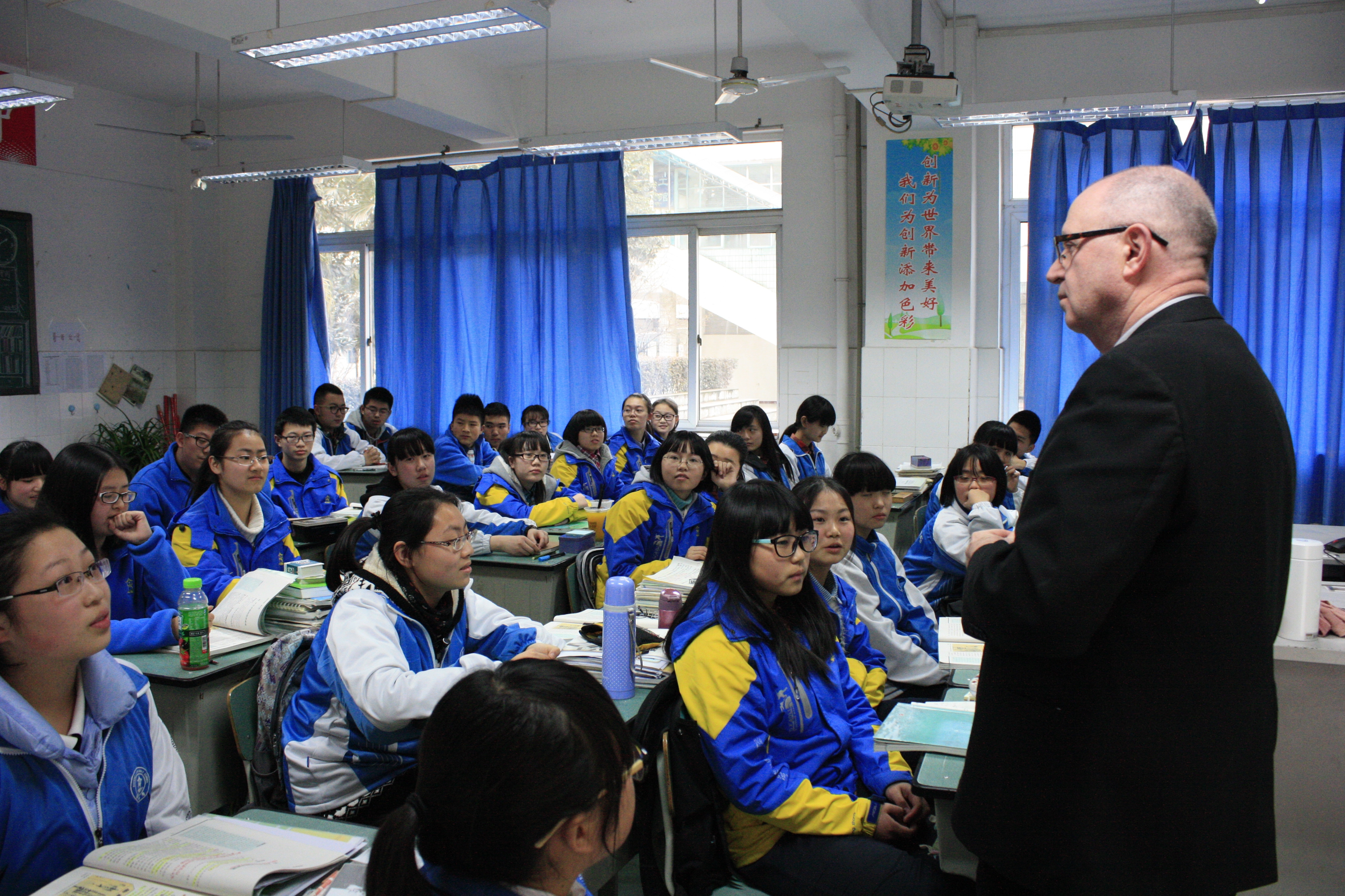 隨后,幾位美國校長還饒有興致地來到高一年級三班和四班,與同學(xué)們進行互動交流,全程用英語對話,現(xiàn)場輕松活躍。