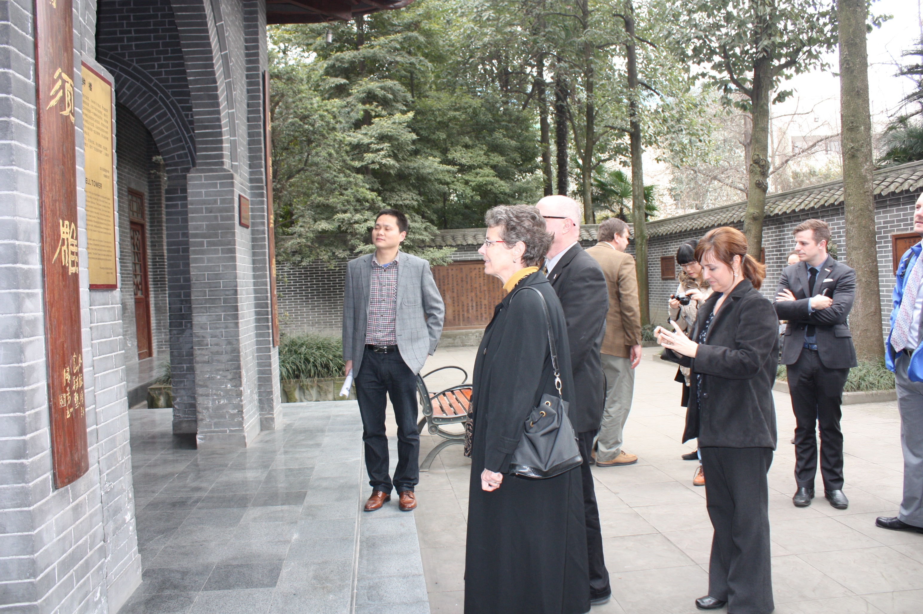 美國高中校長考察團訪問雙流中學(xué)參觀鐘樓