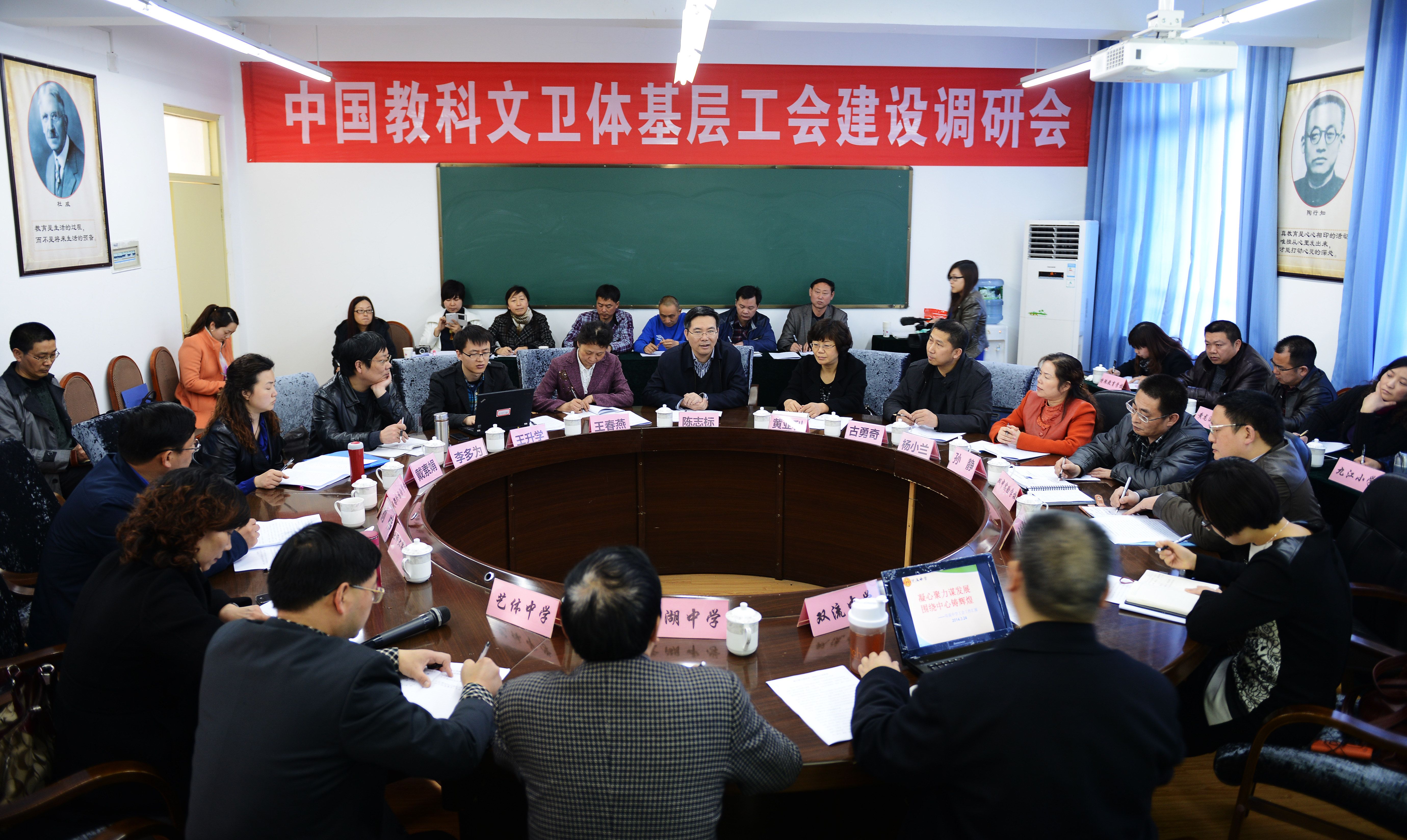 工會(huì)領(lǐng)導(dǎo)一行在參觀了雙中校園及鐘樓校史陳列室之后舉行了調(diào)研座談會(huì)。座談會(huì)上,陳志標(biāo)副主席介紹了此行的調(diào)研內(nèi)容及目的,旨在了解教育基層工會(huì)發(fā)揮了什么作用,特色工作是怎么開展的,在工作開展過(guò)程中有什么困難,以及對(duì)全國(guó)總工會(huì)有什么好的建議等。