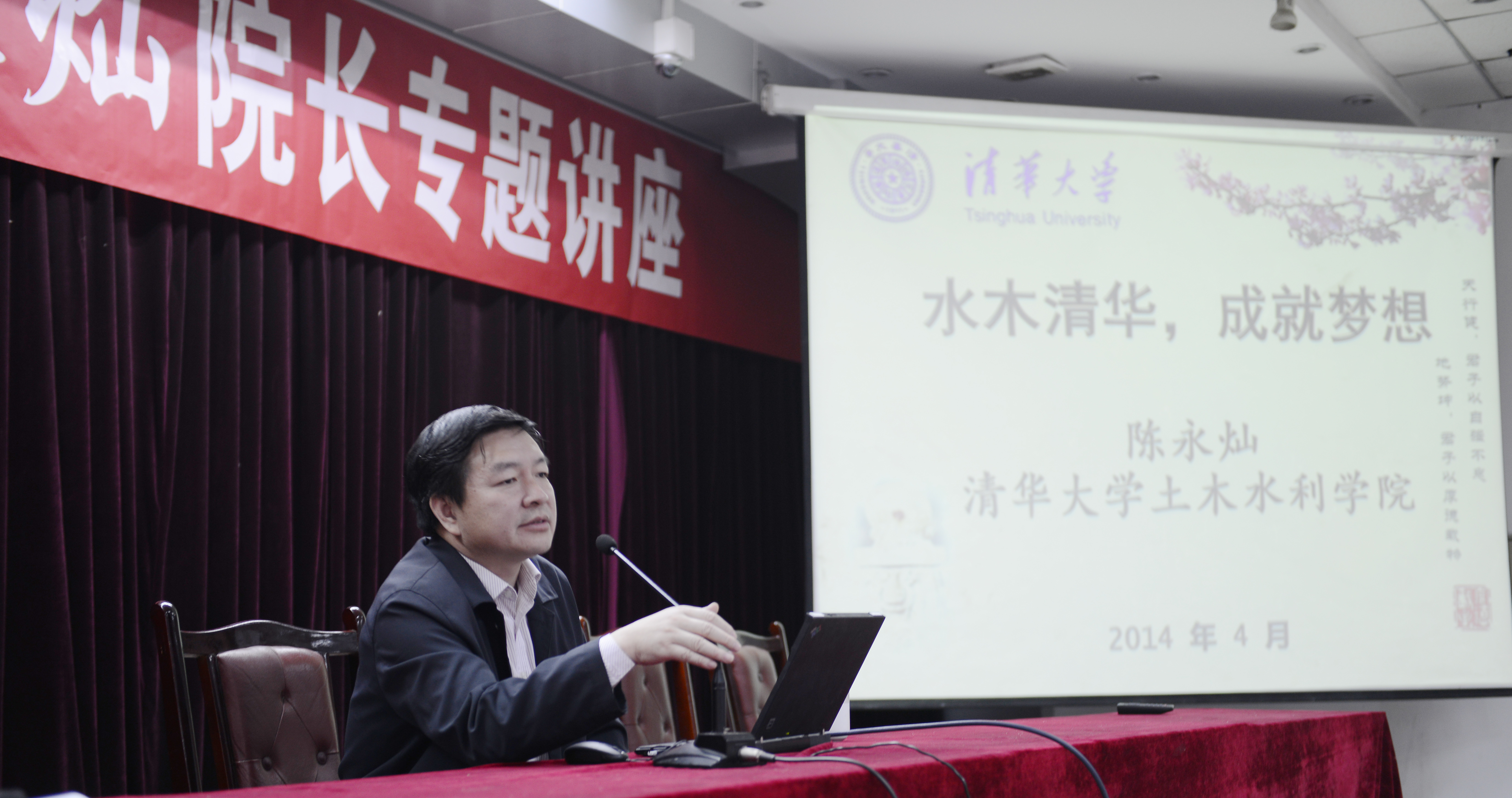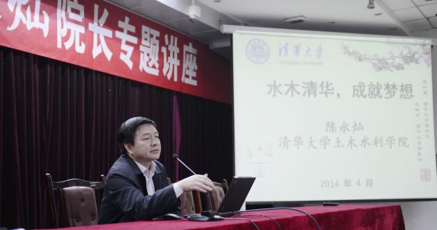 2014年4月10日上午九點(diǎn)半,清華大學(xué)土木水利學(xué)院院長陳永燦在雙流中學(xué)做了題為《水木清華 成就夢想》的專題講座,來自雙中高一高二的部分師生聆聽了講座。