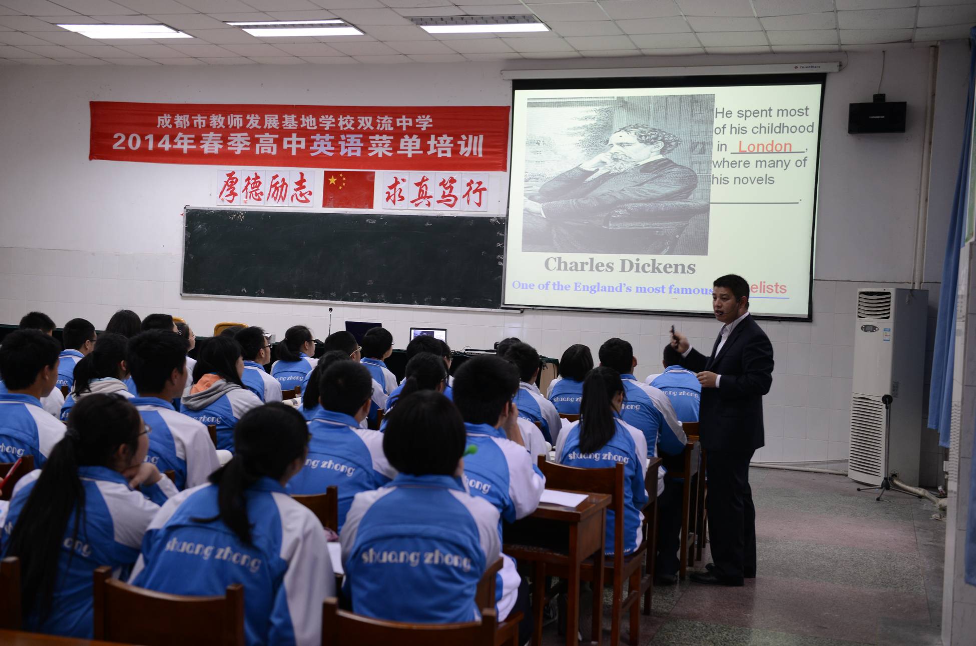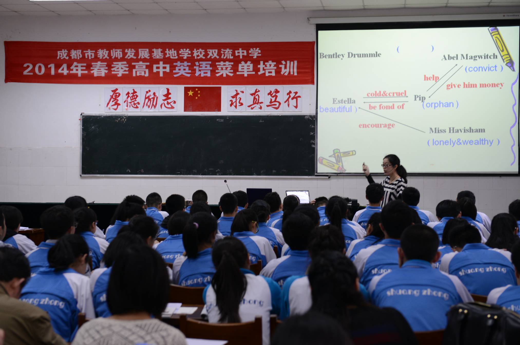 2014年4月21日,成都市春季高中英語(yǔ)菜單培訓(xùn)在成都市教師發(fā)展基地學(xué)校雙流中學(xué)隆重舉行。雙流中學(xué)校長(zhǎng)助理徐天福、英語(yǔ)教研組組長(zhǎng)童利老師負(fù)責(zé)組織此次培訓(xùn)。雙流中學(xué)多功能二廳座無(wú)虛席,參加此次培訓(xùn)的是來(lái)自南片區(qū)所有學(xué)校的英語(yǔ)教師。
