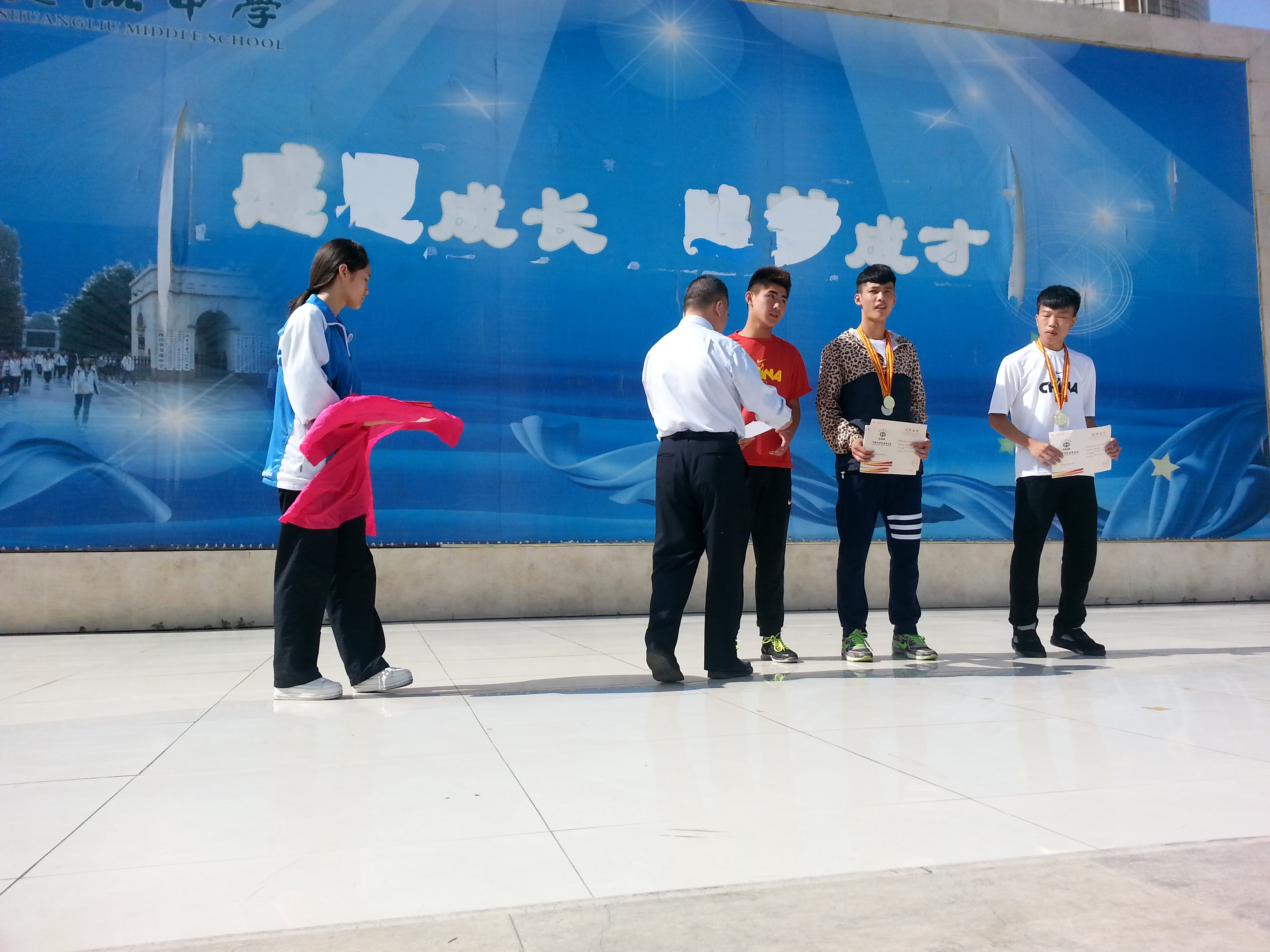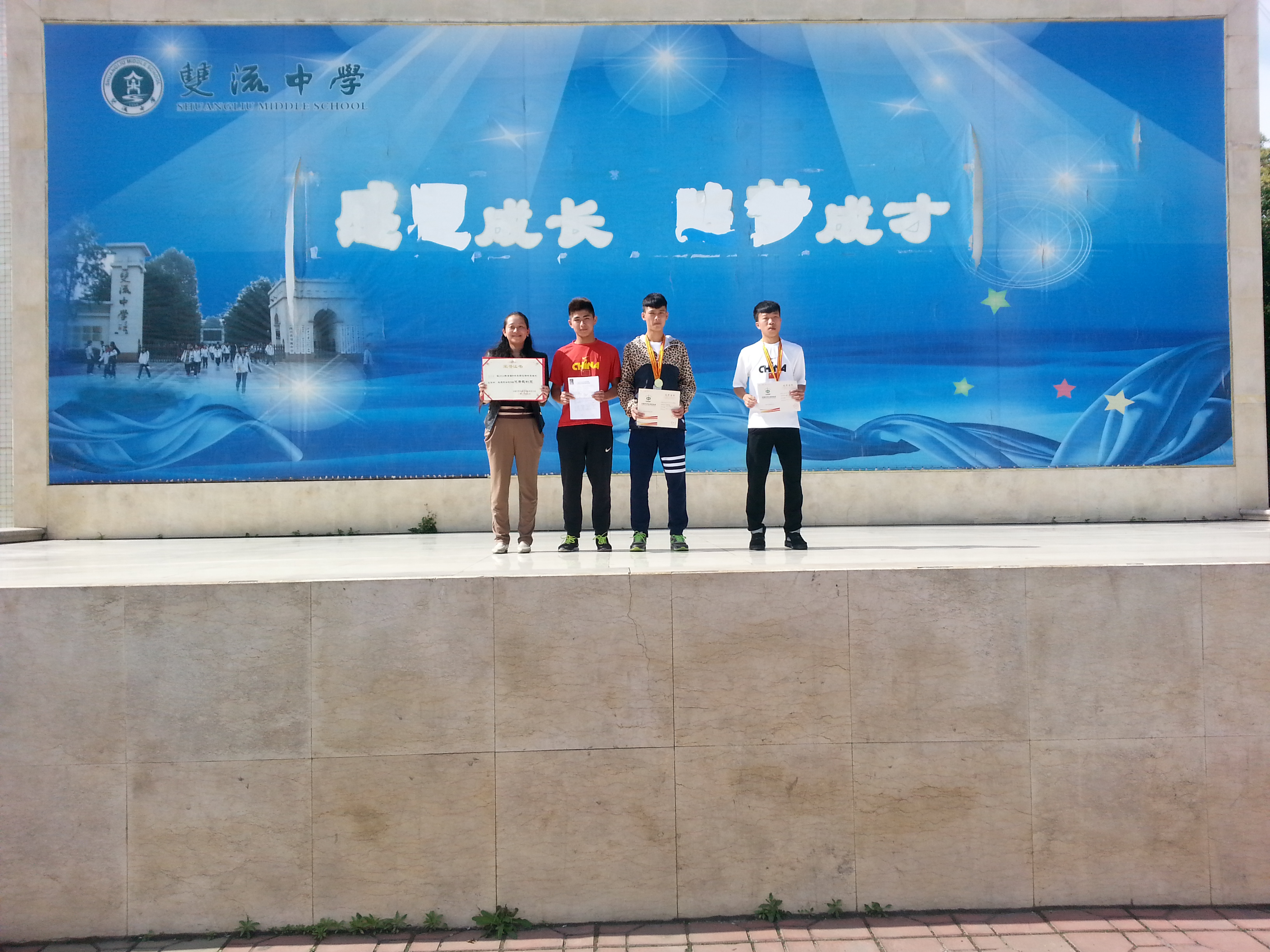 在2014年全國中學(xué)生田徑錦標(biāo)賽中,我校田徑健兒在賽場上頑強拼搏,取得可喜成績,創(chuàng)造了雙流中學(xué)競技體育田徑比賽的歷史新高,獲得本次比賽四川參賽代表隊唯一兩枚金牌。我校唐俊美老師被評為本次比賽“優(yōu)秀裁判員”。