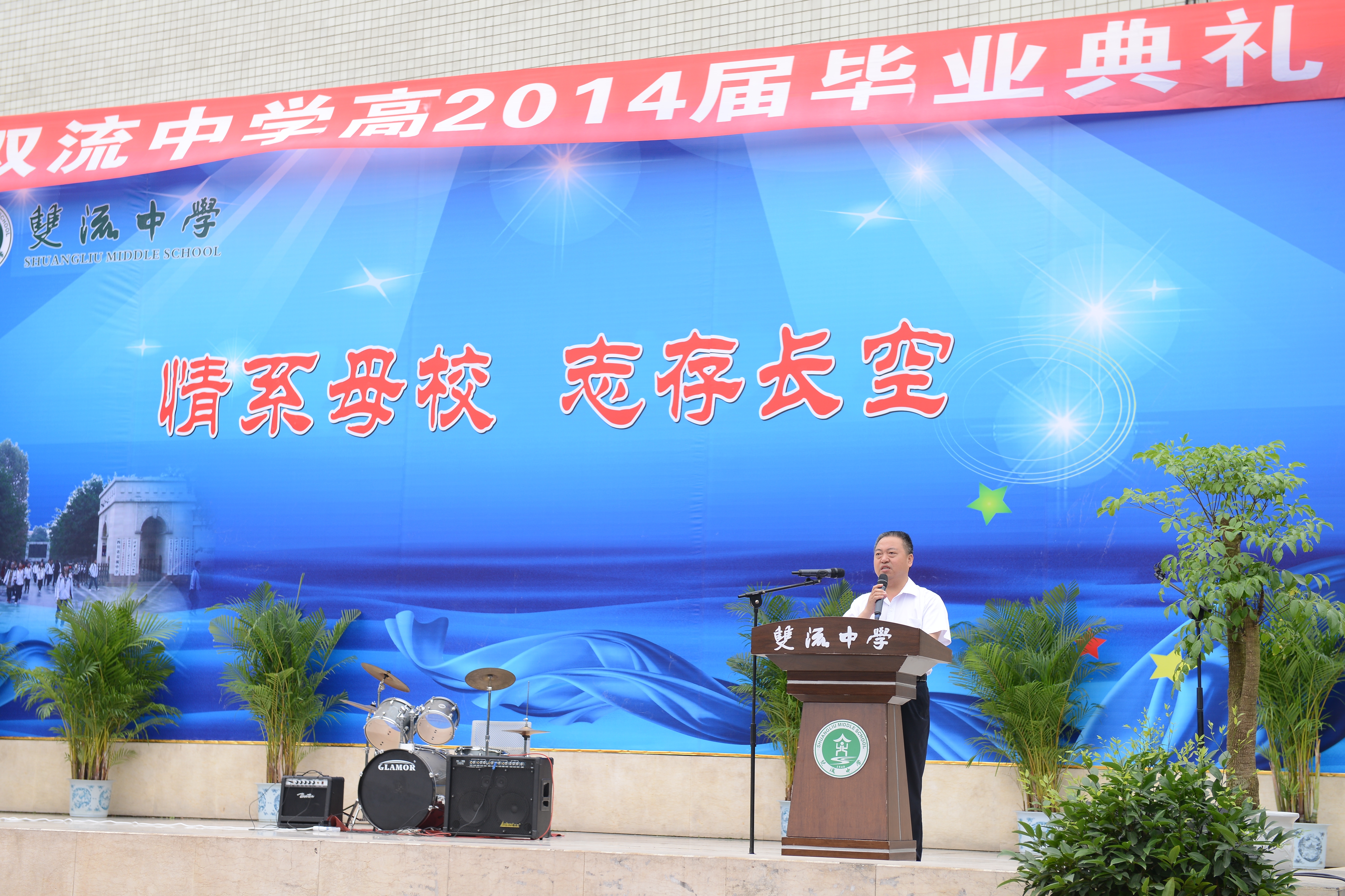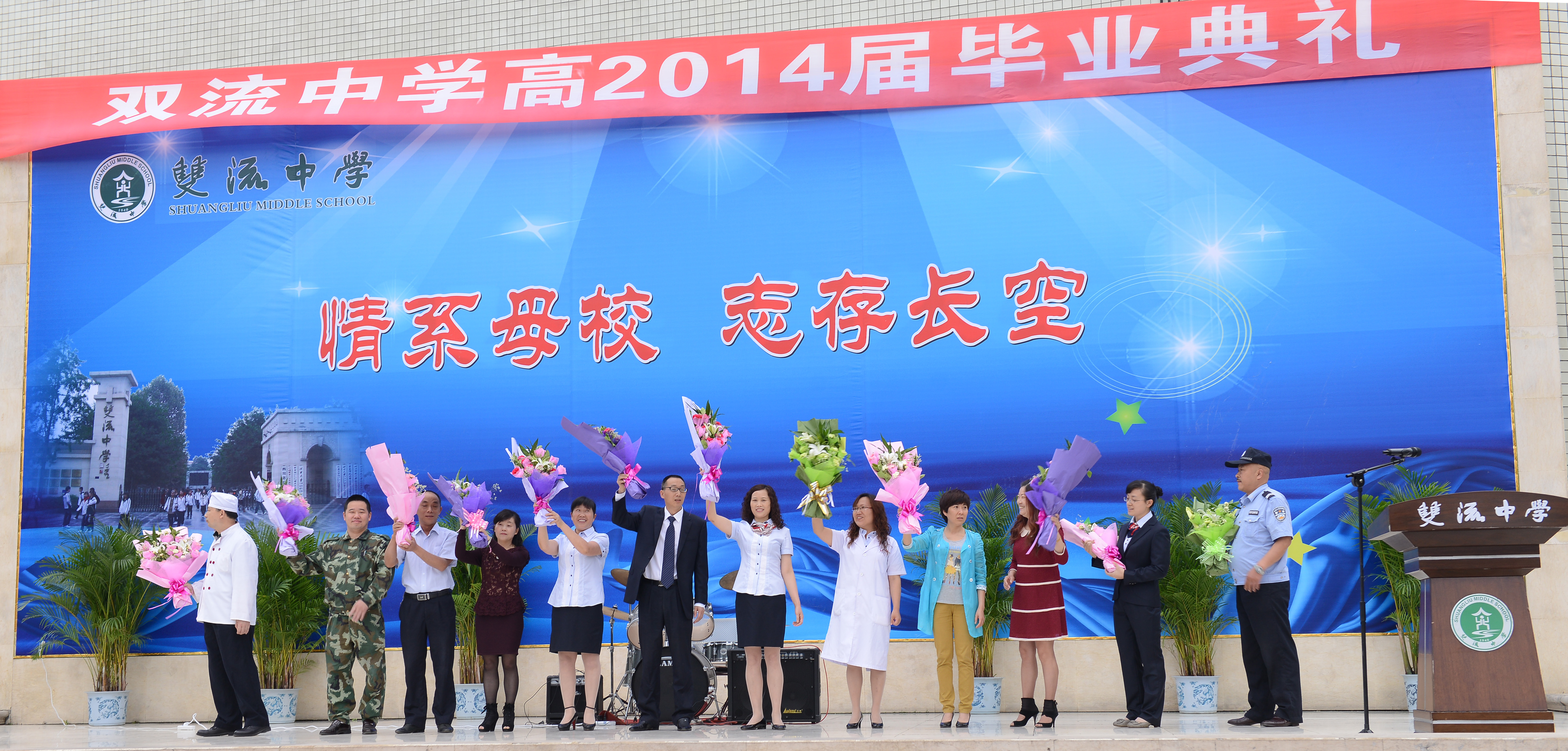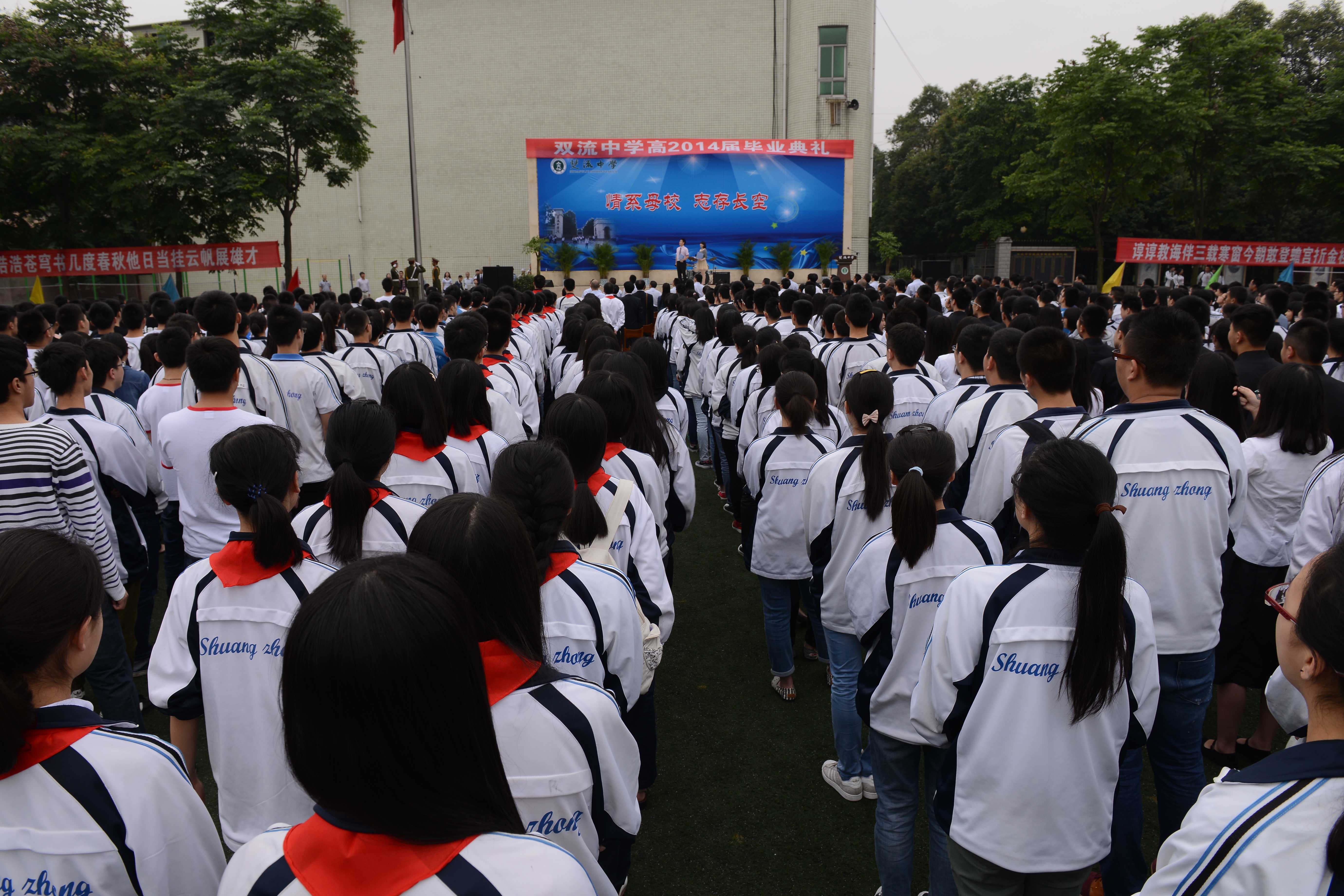 2014年5月16日,是一個(gè)令人難忘的日子。雙流中學(xué)運(yùn)動(dòng)場(chǎng)上彩旗飄飄,主席臺(tái)兩側(cè)“諄諄教誨伴三載寒窗今朝敢登蟾宮折金桂,浩浩蒼穹書(shū)幾度春秋他日當(dāng)掛云帆展雄才”的標(biāo)語(yǔ)分外醒目,雙流中學(xué)高2014屆全體師生在這里隆重集會(huì),舉行畢業(yè)典禮。伴隨著莊嚴(yán)的國(guó)歌聲,五星紅旗冉冉升起,以“情系母校,志存長(zhǎng)空”為主題的畢業(yè)典禮拉開(kāi)了帷幕,為同學(xué)們成功的高中生活完美作結(jié),為即將奔赴高考考場(chǎng)的學(xué)子們壯行助威。