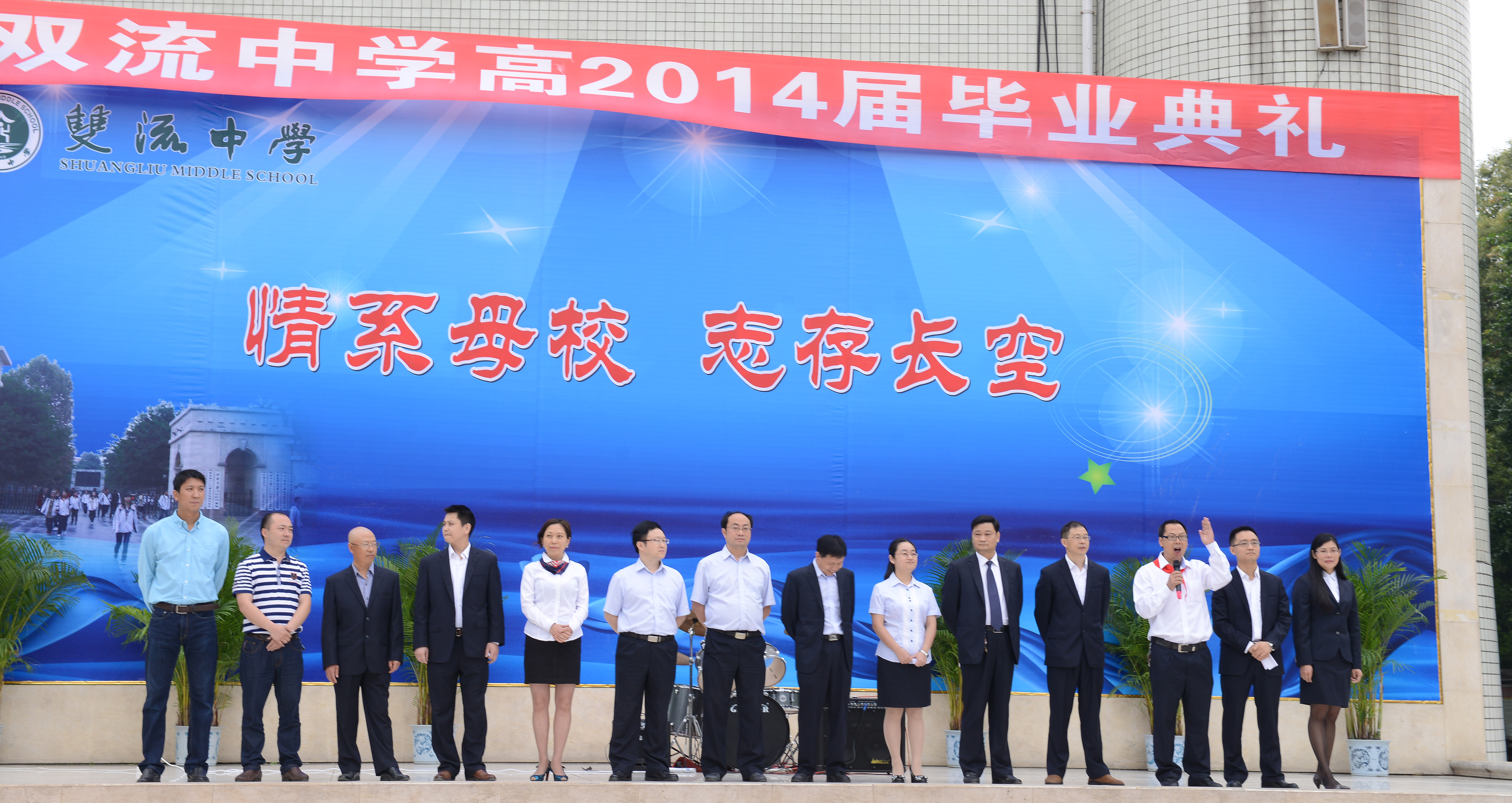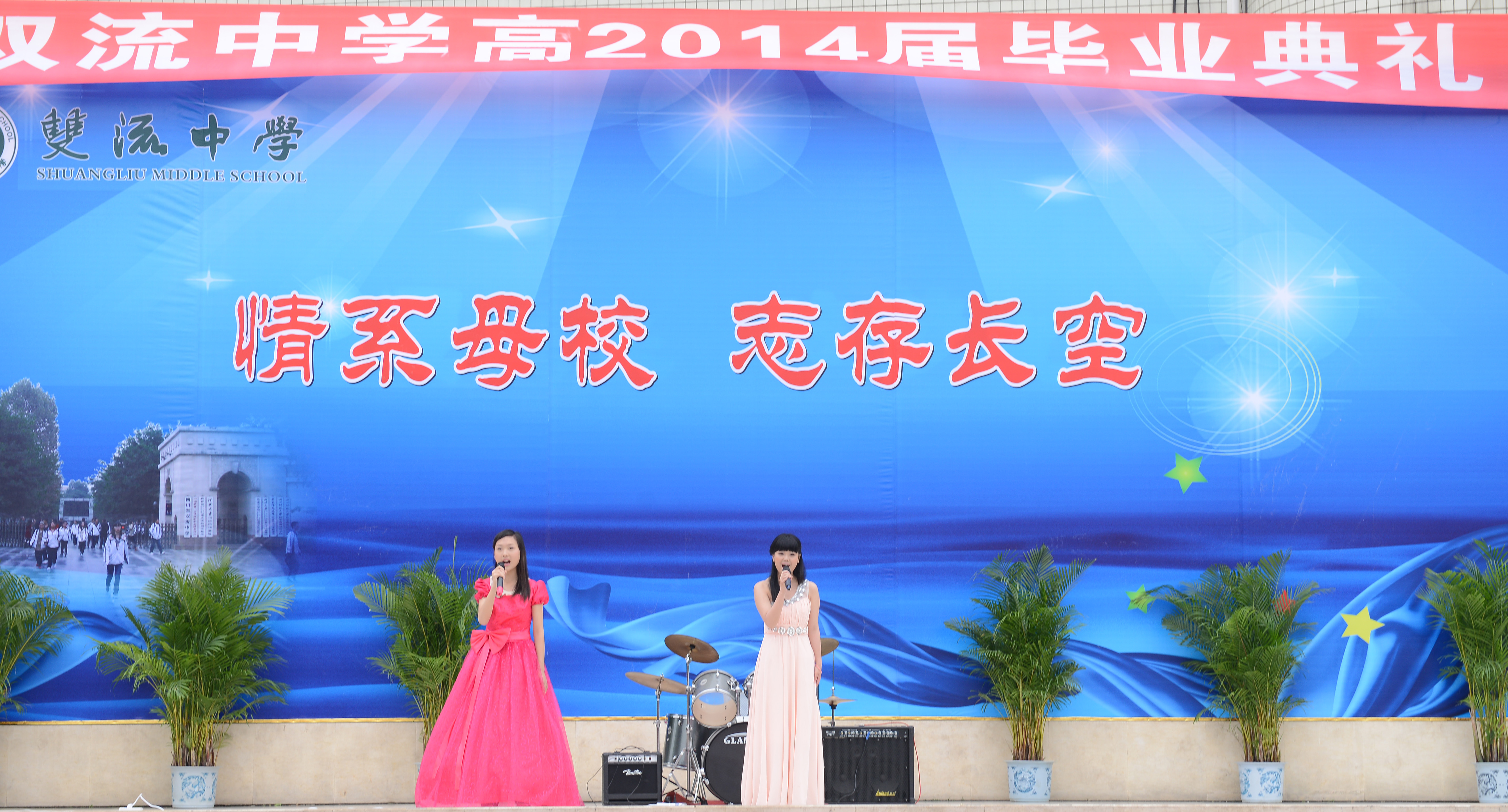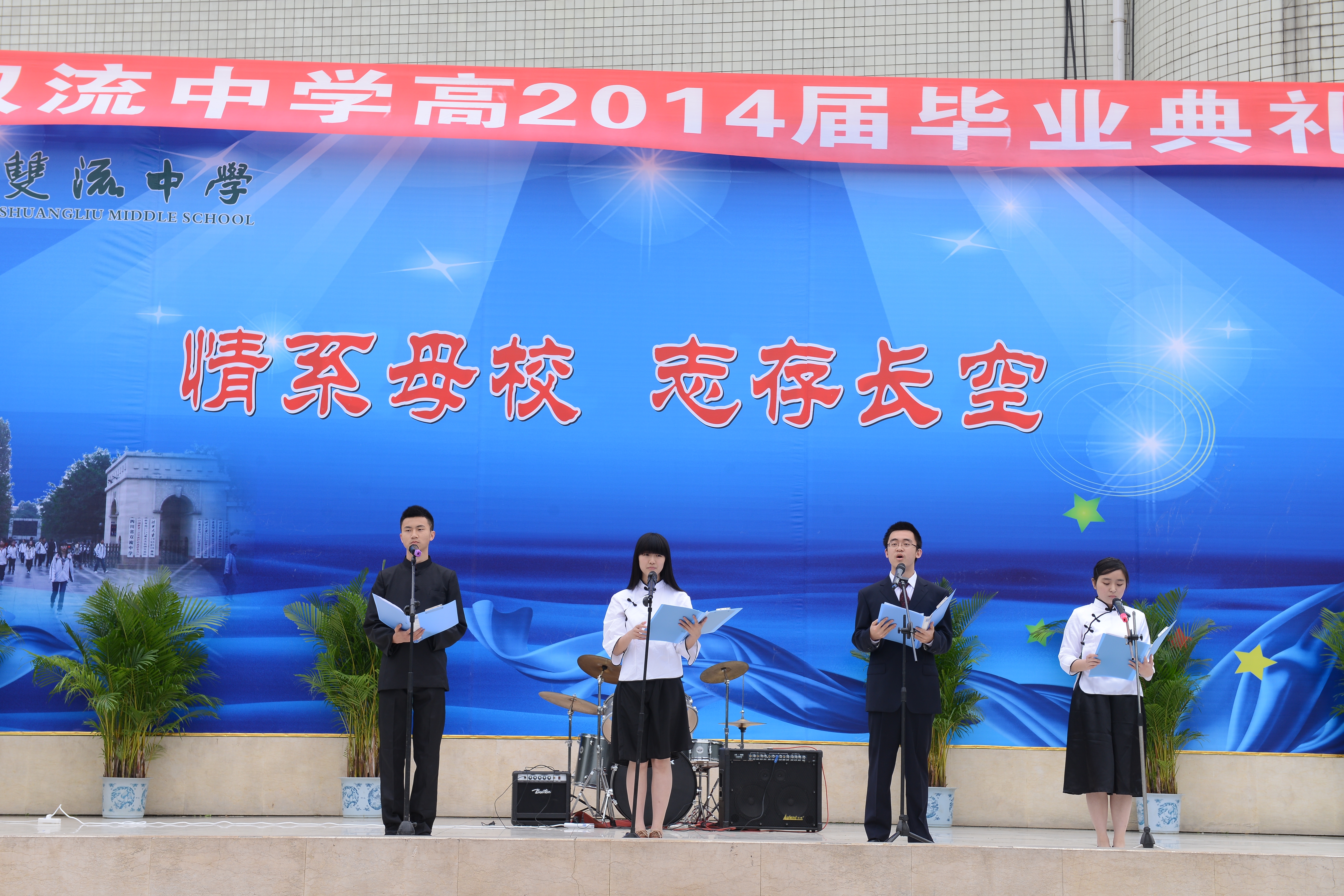 2014年5月16日,是一個(gè)令人難忘的日子。雙流中學(xué)運(yùn)動(dòng)場(chǎng)上彩旗飄飄,主席臺(tái)兩側(cè)“諄諄教誨伴三載寒窗今朝敢登蟾宮折金桂,浩浩蒼穹書(shū)幾度春秋他日當(dāng)掛云帆展雄才”的標(biāo)語(yǔ)分外醒目,雙流中學(xué)高2014屆全體師生在這里隆重集會(huì),舉行畢業(yè)典禮。伴隨著莊嚴(yán)的國(guó)歌聲,五星紅旗冉冉升起,以“情系母校,志存長(zhǎng)空”為主題的畢業(yè)典禮拉開(kāi)了帷幕,為同學(xué)們成功的高中生活完美作結(jié),為即將奔赴高考考場(chǎng)的學(xué)子們壯行助威。