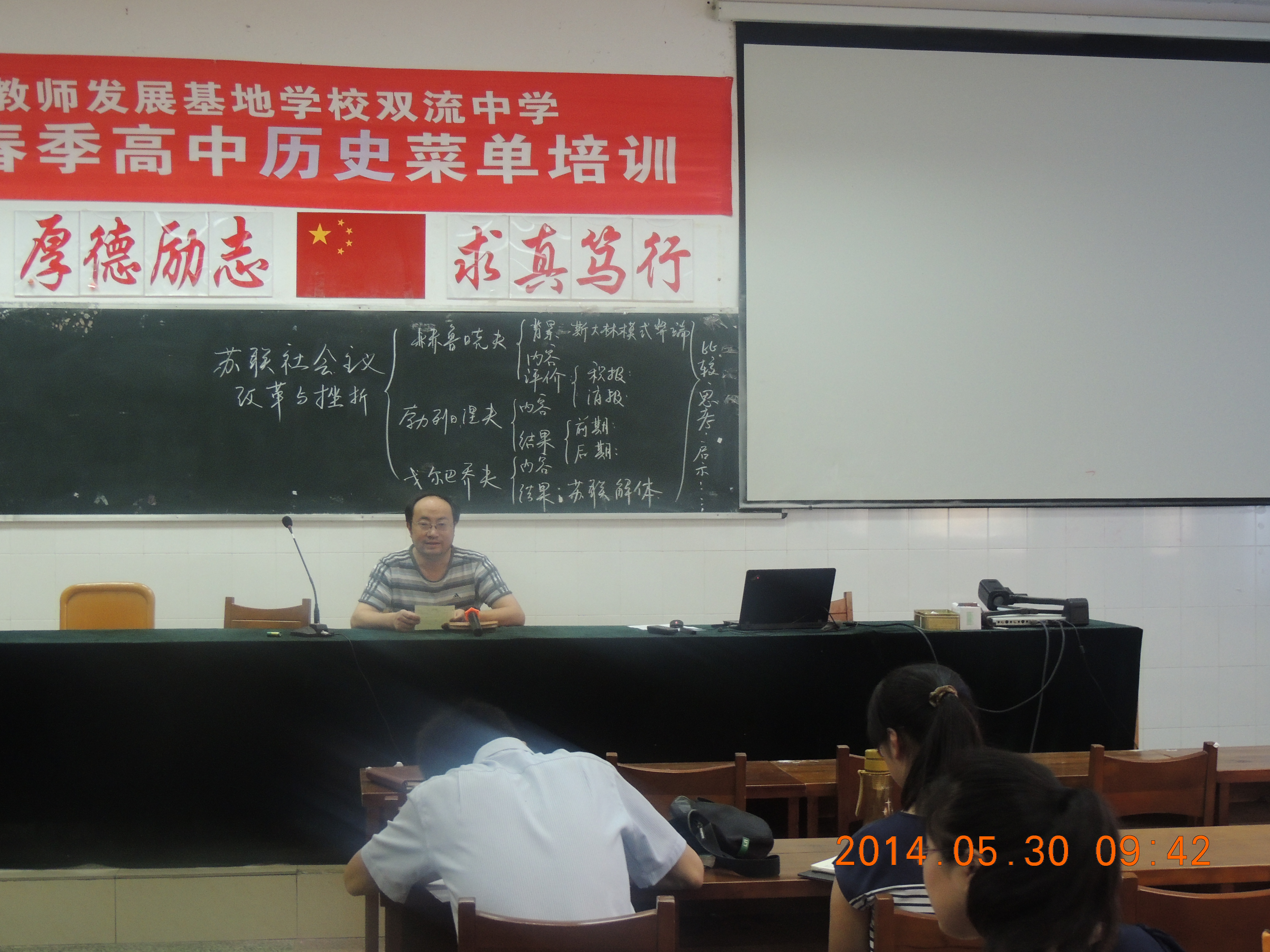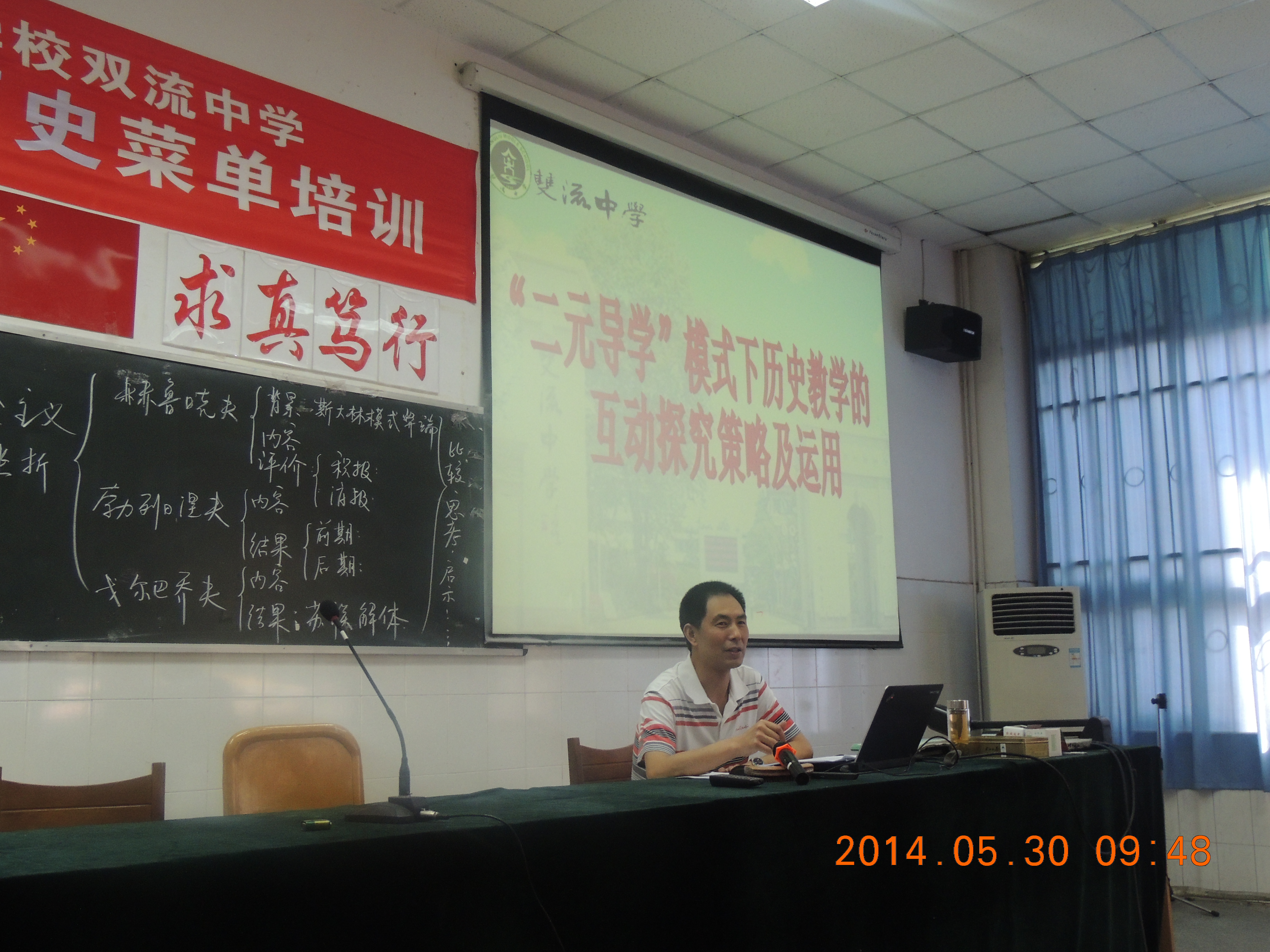 2014年5月30日上午,成都市教師發(fā)展基地學(xué)校高中歷史菜單培訓(xùn)第四次活動(dòng)在雙流中學(xué)舉行。雙流縣研培中心教研員匡世國到會(huì)指導(dǎo),來自雙流縣內(nèi)外的歷史教師參與了這次活動(dòng)。本次活動(dòng)的主題是“二元導(dǎo)學(xué)與探究式教學(xué)研究”,活動(dòng)由四川省特級教師、雙流中學(xué)歷史教研組長胡克芹主持。