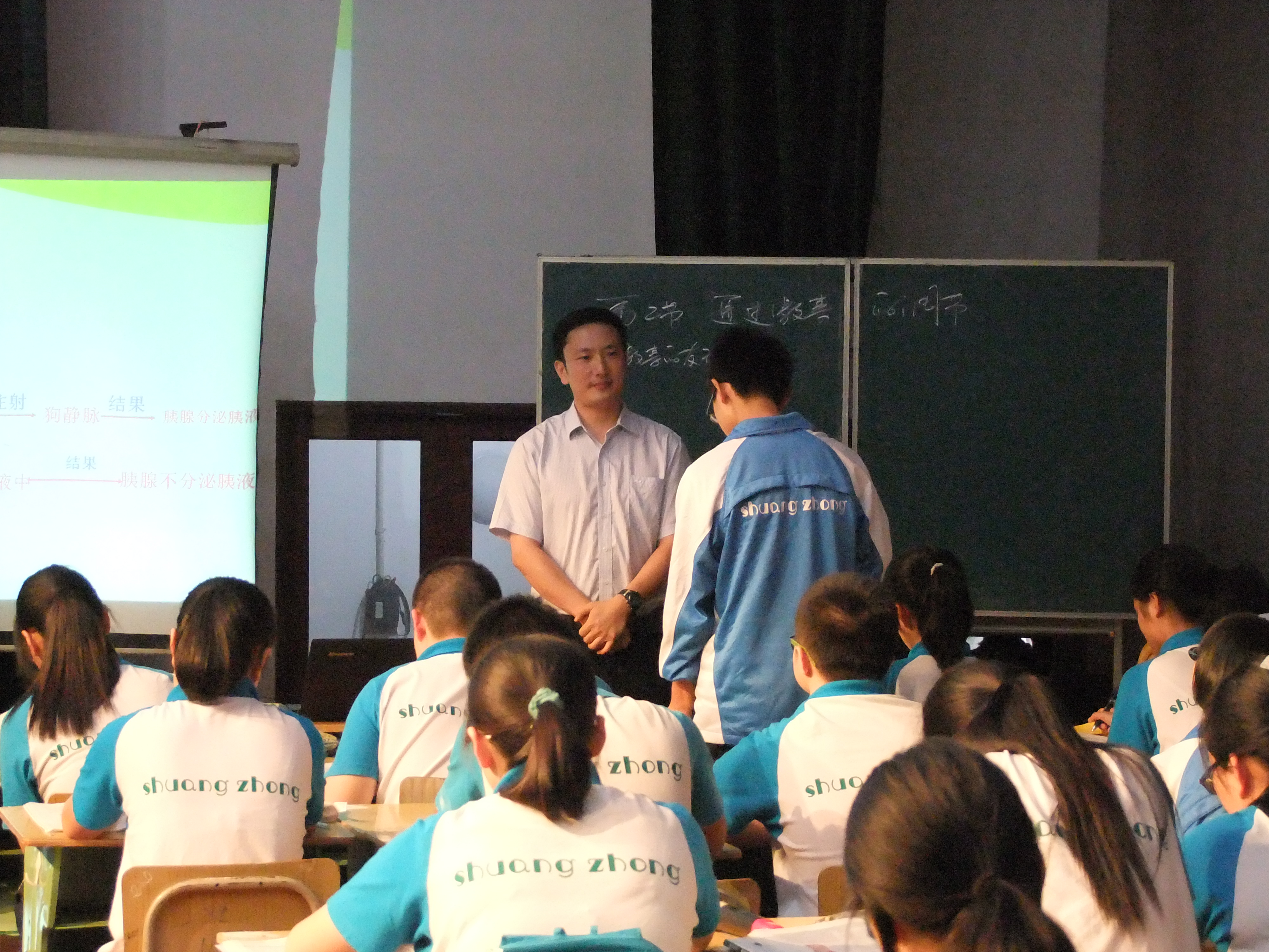 會議開始前,雙流中學優(yōu)秀青年教師金兵為大家上了一堂精彩的生物展示課《激素》。這堂課打破了以往“填鴨式”的老師主講的課堂模式,采用以學生為主體,小組合作學習、探究學習、展示學習的課堂教學模式,這就是“二元導學”課堂模式。