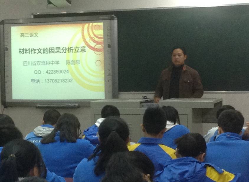 首先,陳劍泉老師獻(xiàn)上一節(jié)研討課《材料作文的因果分析立意》。本節(jié)課在概括思維和反概括思維(概括思維的逆向思維)的引導(dǎo)下,以舊帶新,通過回憶內(nèi)容概括、本質(zhì)概括的方法,然后結(jié)合具體材料引導(dǎo)學(xué)生在內(nèi)容概括的基礎(chǔ)上運(yùn)用因果分析法立意,最后學(xué)以致用,要求學(xué)生對2014年高考湖南卷作文材料進(jìn)行分析。