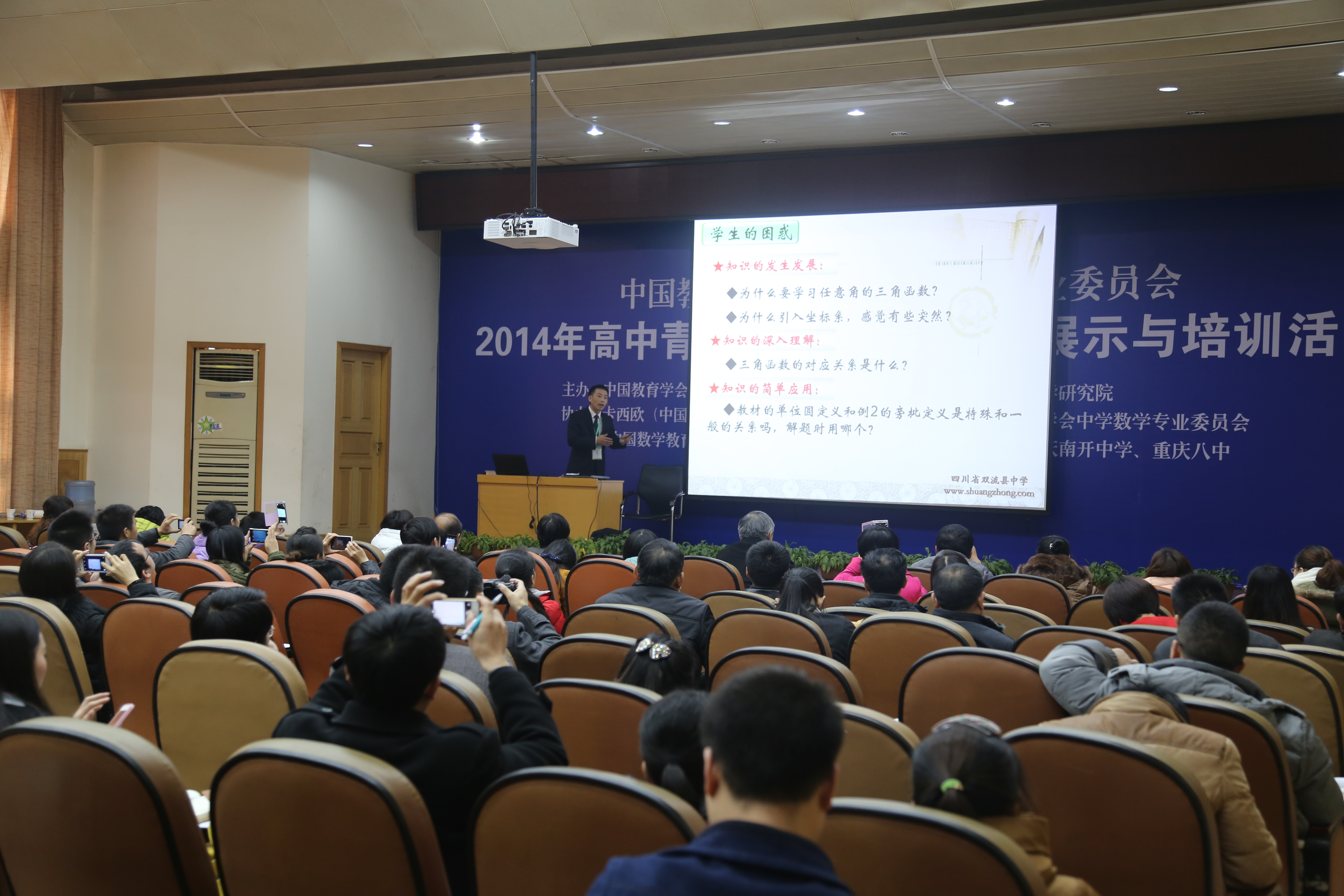2014年全國高中青年數(shù)學(xué)教師優(yōu)秀課展示大賽于12月8日在重慶一中圓滿結(jié)束。來自全國三十多個省、直轄市的96名高中青年數(shù)學(xué)教師進行了課堂展示,與會人員達1500余人。雙流中學(xué)羅文平老師在此次大賽中,展示課題為《任意角的三角函數(shù)》(第1課時),專家評委給予高度評價:此堂課有深度、有高度、有寬度。羅老師現(xiàn)場自述與展示表現(xiàn)優(yōu)秀,榮獲全國一等獎。