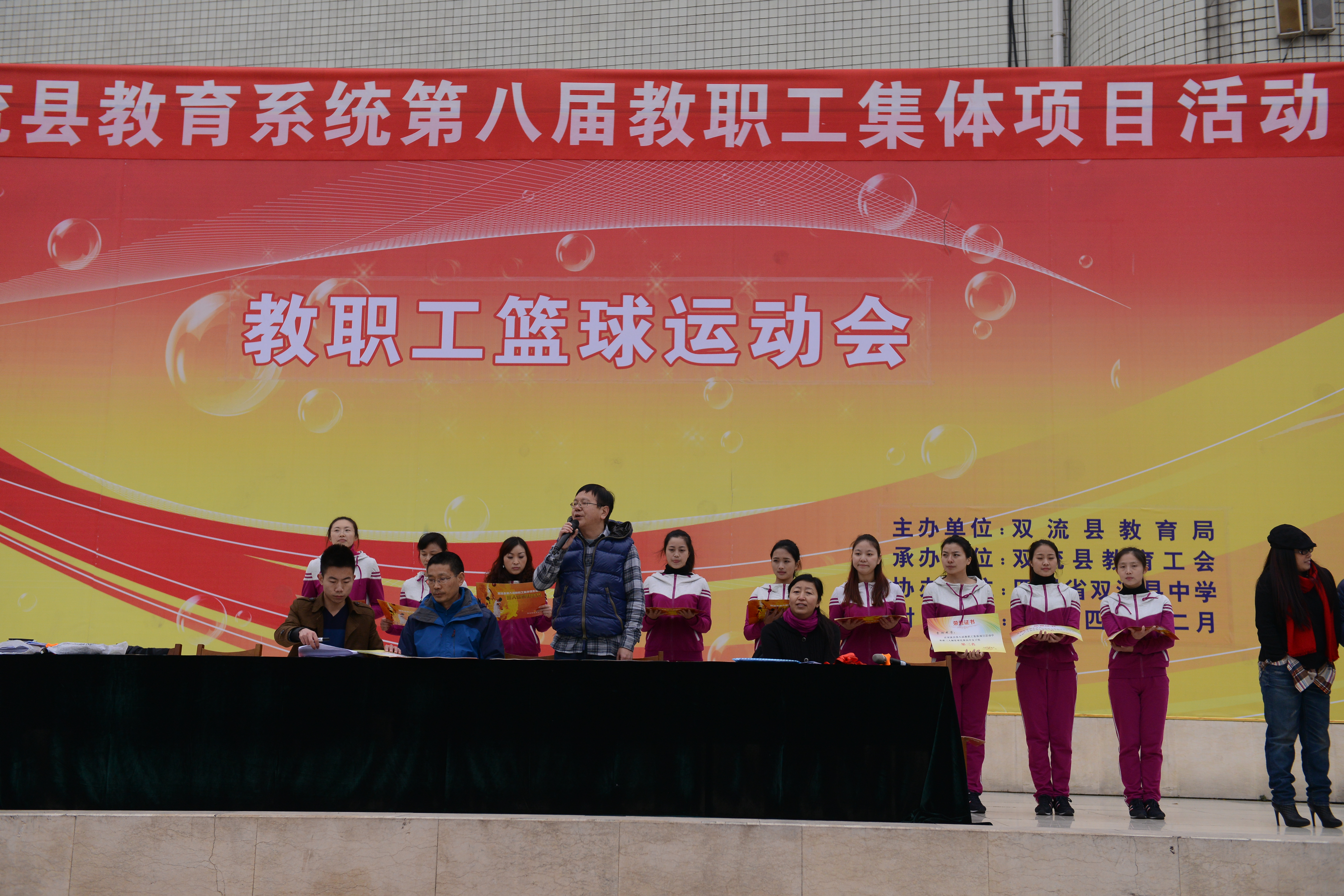 由縣教育局主辦、雙流中學(xué)承辦的雙流縣第八屆教職工集體項(xiàng)目運(yùn)動(dòng)會(huì)經(jīng)過近兩個(gè)月的比賽于12月6日?qǐng)A滿閉幕,我校教師組隊(duì)參加比賽,參賽隊(duì)員認(rèn)真訓(xùn)練,發(fā)揚(yáng)團(tuán)隊(duì)精神,在比賽中展示了雙中教職工隊(duì)伍的優(yōu)良素質(zhì),并獲得了優(yōu)異成績: