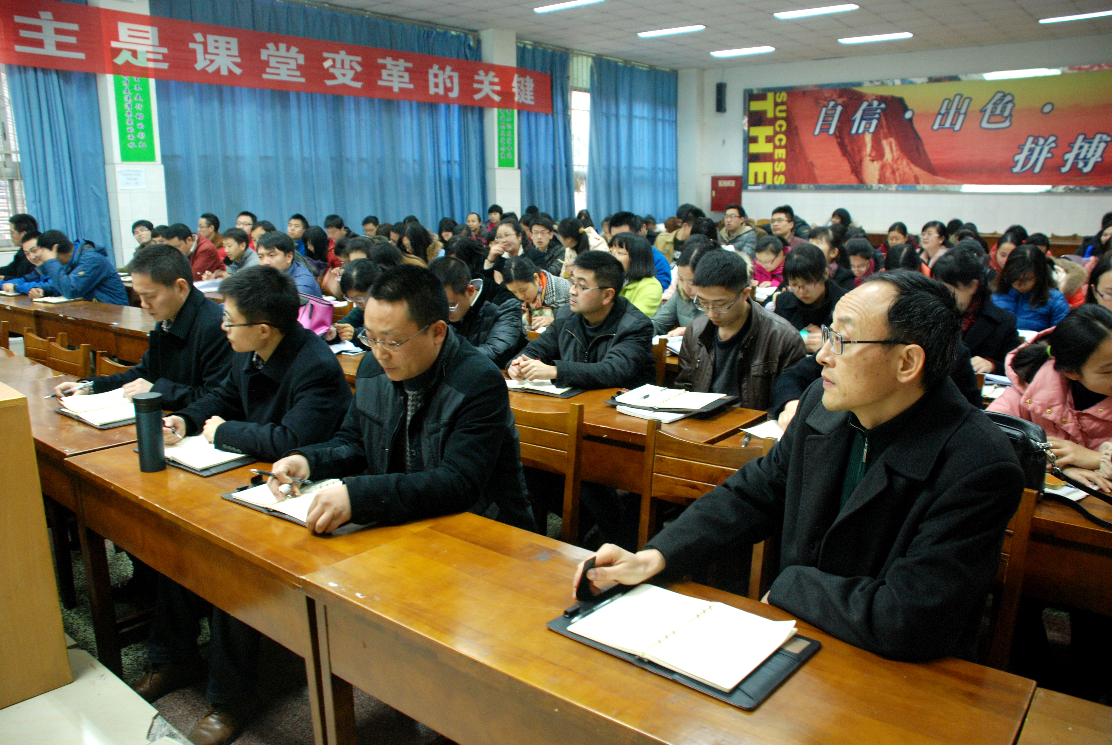 雙中名師工作室特級教師胡克芹就教科研方面為青年教師做了講座。他說:“要讓研究成為常態(tài)?!毖芯啃枰獙I(yè)的知識,還需要持之以恒的精神,需要事業(yè)心和進取心,要讓研究成為一種習慣。因此在日常教學中,面對問題時,一定要養(yǎng)成思考的習慣,思考有沒有更好的解決辦法,而不能讓問題從眼前溜走。還要多閱讀,善于思辨,善于捕捉和發(fā)現(xiàn)問題,隨時記錄,堅持寫作。