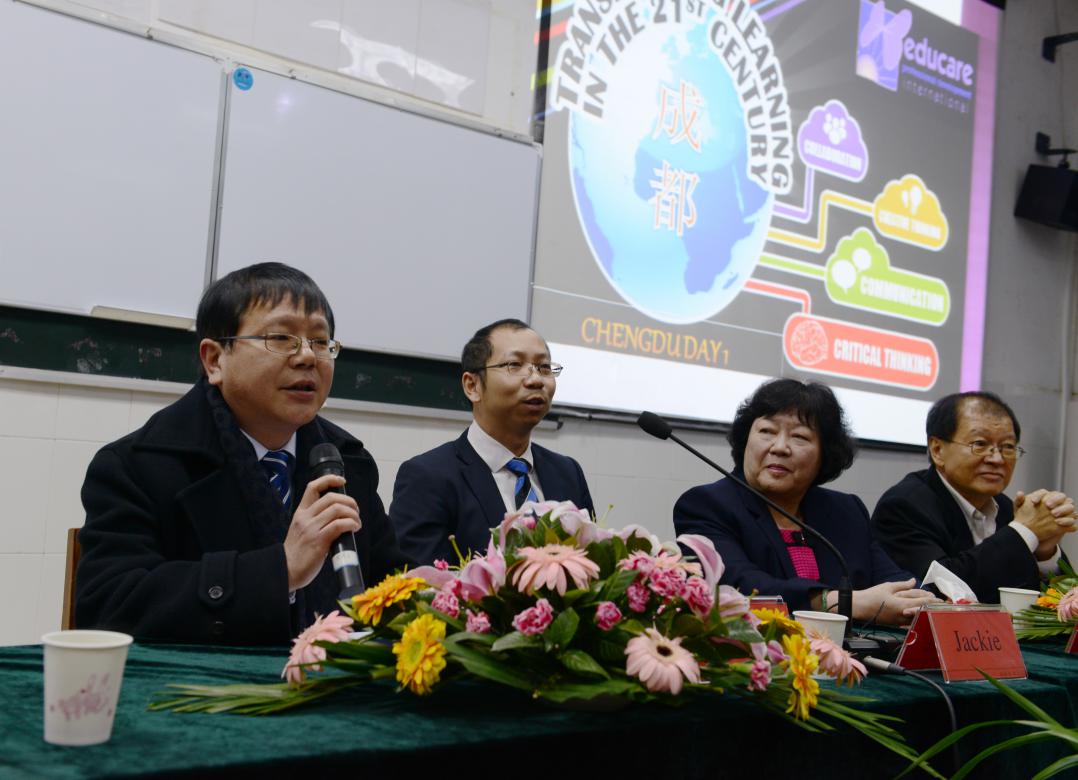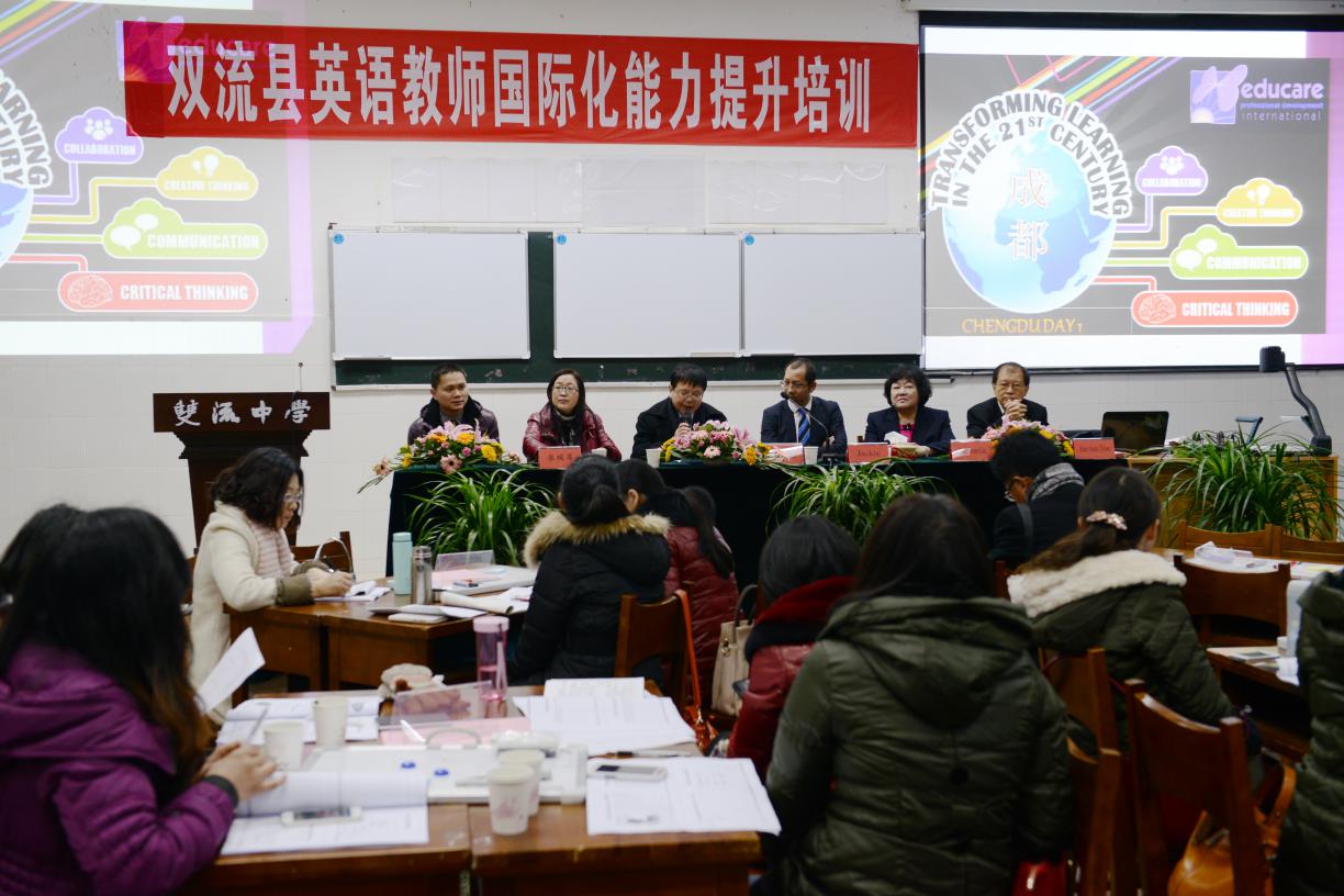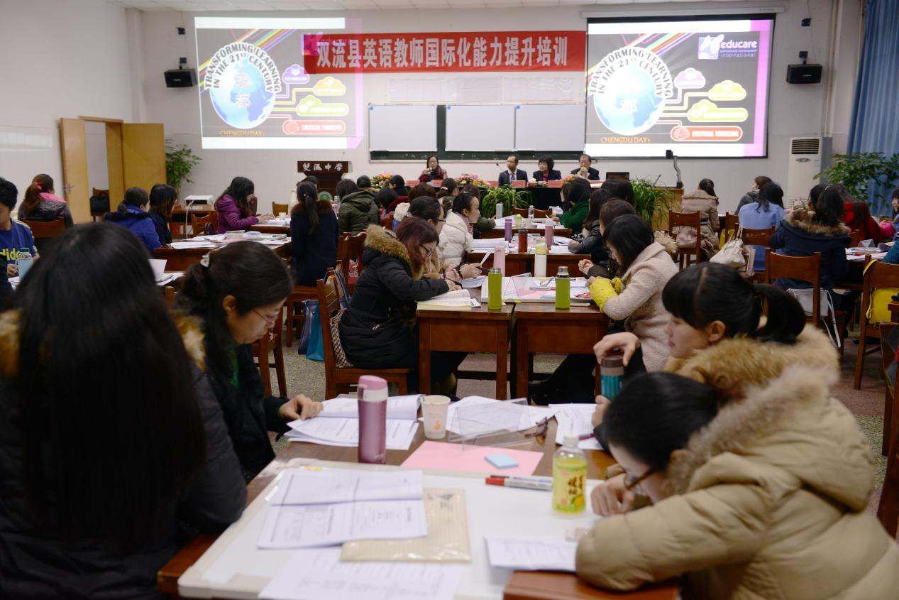 在教育國際化的推進下,為探索和實踐高中多樣化、特色化發(fā)展,拓寬人才培養(yǎng)渠道,滿足不同學(xué)生需要,以實現(xiàn)教育內(nèi)容國際化,人才培養(yǎng)國際化為目標(biāo),2015年1月28日,雙流縣英語教師國際化能力提升培訓(xùn),在雙流中學(xué)多功能二廳隆重舉行。雙流縣各中小學(xué)選拔出的優(yōu)秀教師參加了此次為期4天(January29to31,2015)的培訓(xùn)。