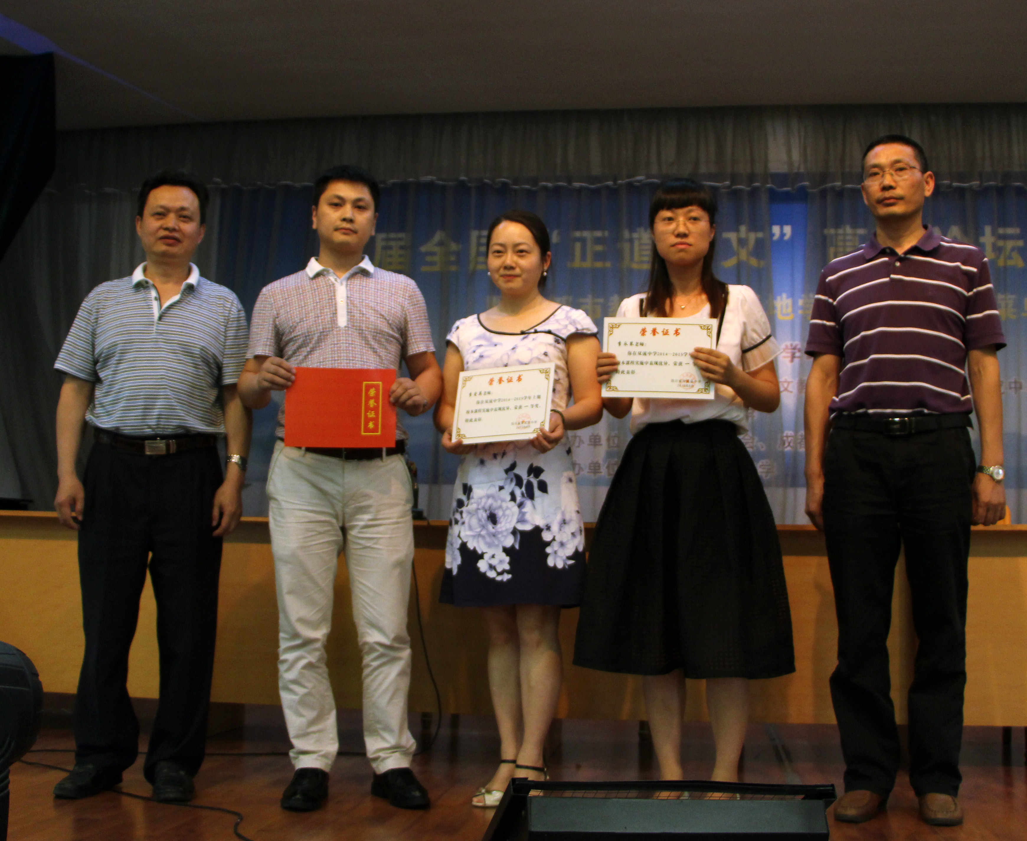 在2015年6月1日全校教職工大會上,學校對校本課程工作進行了階段性小結(jié),對下學期校本課程工作進行了周密部署。首先,學導處副主任彭春暉詳細介紹了學校校本課程開設的階段性成果,介紹了學校修訂的《雙流中學校本課程開發(fā)、實施與評價方案》,使全體教師達成共識、清晰規(guī)劃、明確要求。接著,黃鐘副校長宣布上學期校本課程實施教師表彰名單,向發(fā)友副書記為獲獎教師頒獎,會議現(xiàn)場洋溢著熱烈的氣氛。
