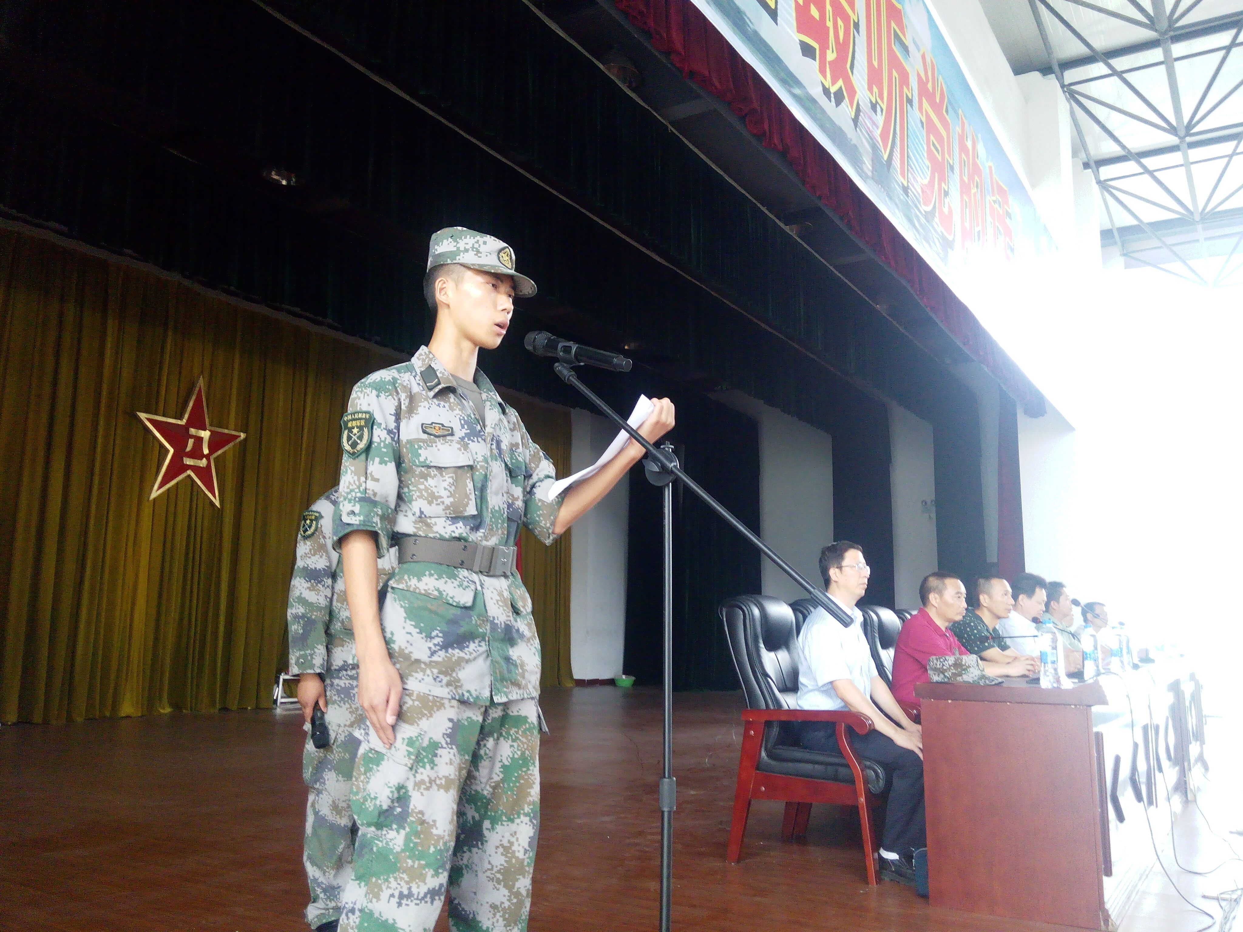 雙流中學高2015級新生軍訓開訓典禮軍訓教官代表謝家毅發(fā)言?