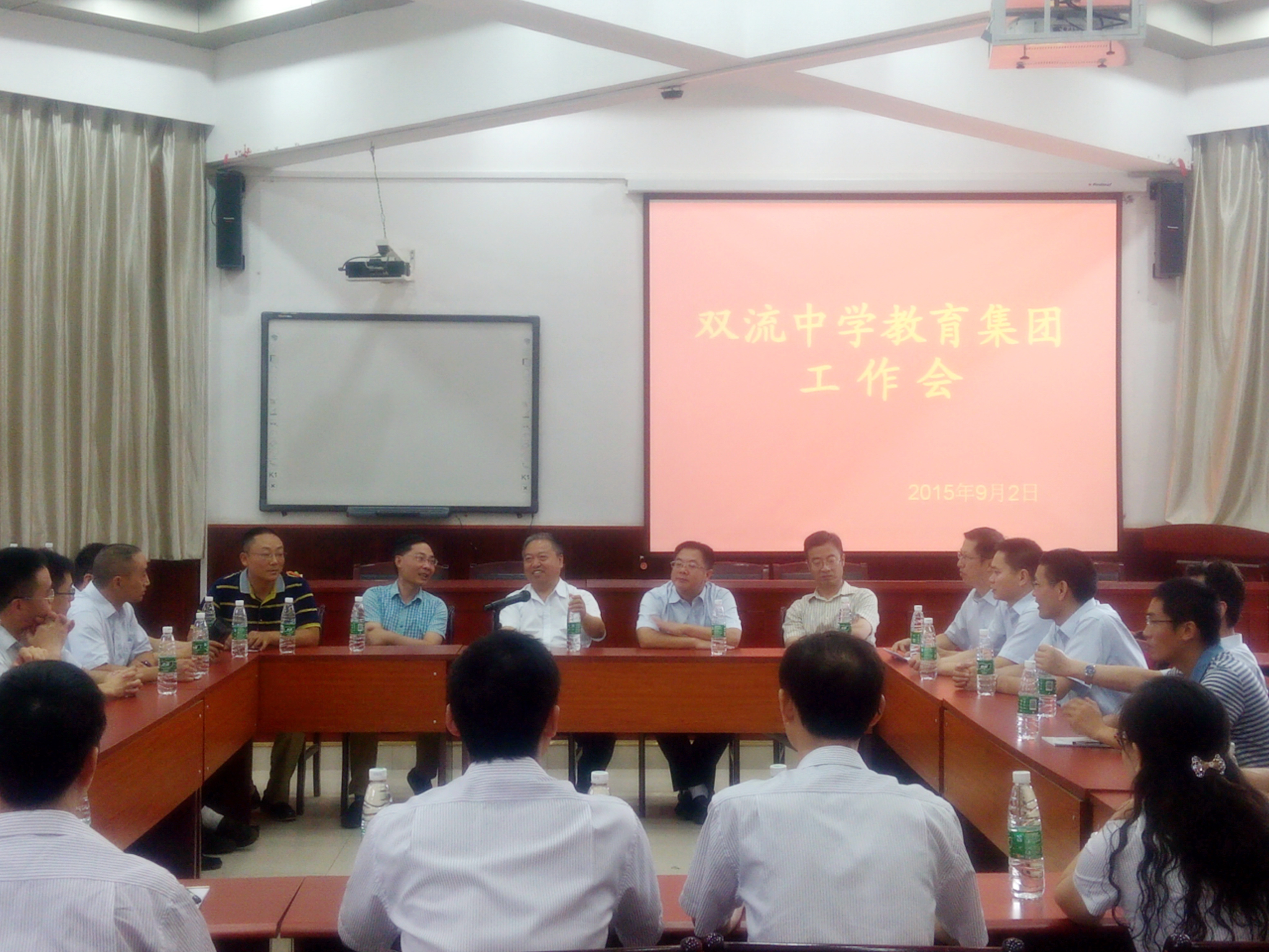 2015年9月2日上午,雙流中學(xué)教育集團(tuán)工作會(huì)在雙流中學(xué)協(xié)和初中實(shí)驗(yàn)學(xué)校召開,共同商討2015—2016年度的集團(tuán)工作思路。集團(tuán)龍頭學(xué)校雙流中學(xué),成員學(xué)校雙流中學(xué)協(xié)和初中實(shí)驗(yàn)學(xué)校、雙流中學(xué)永安校區(qū)、勝利初中和公興初中的校長(zhǎng)及相關(guān)領(lǐng)導(dǎo)參加了會(huì)議。