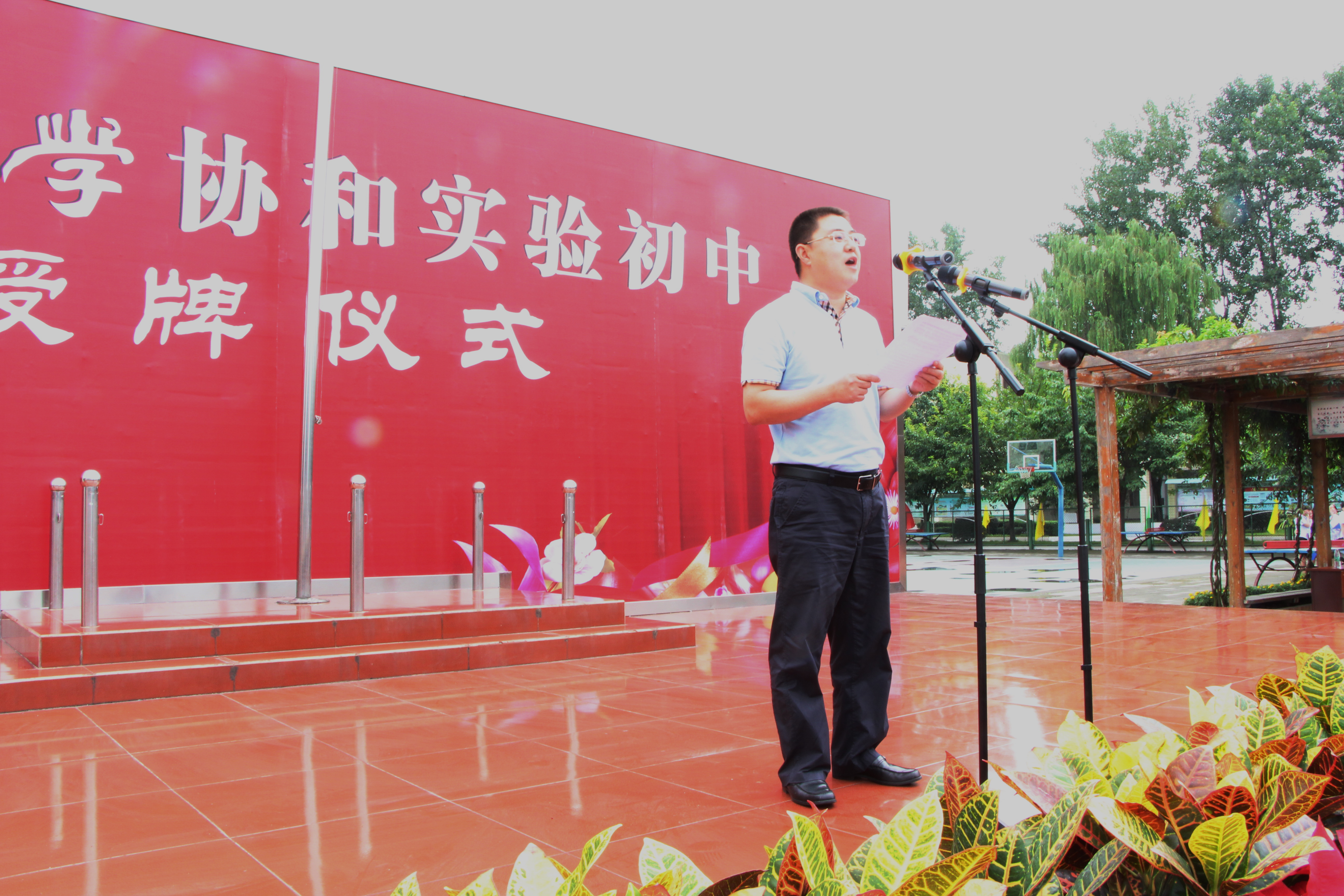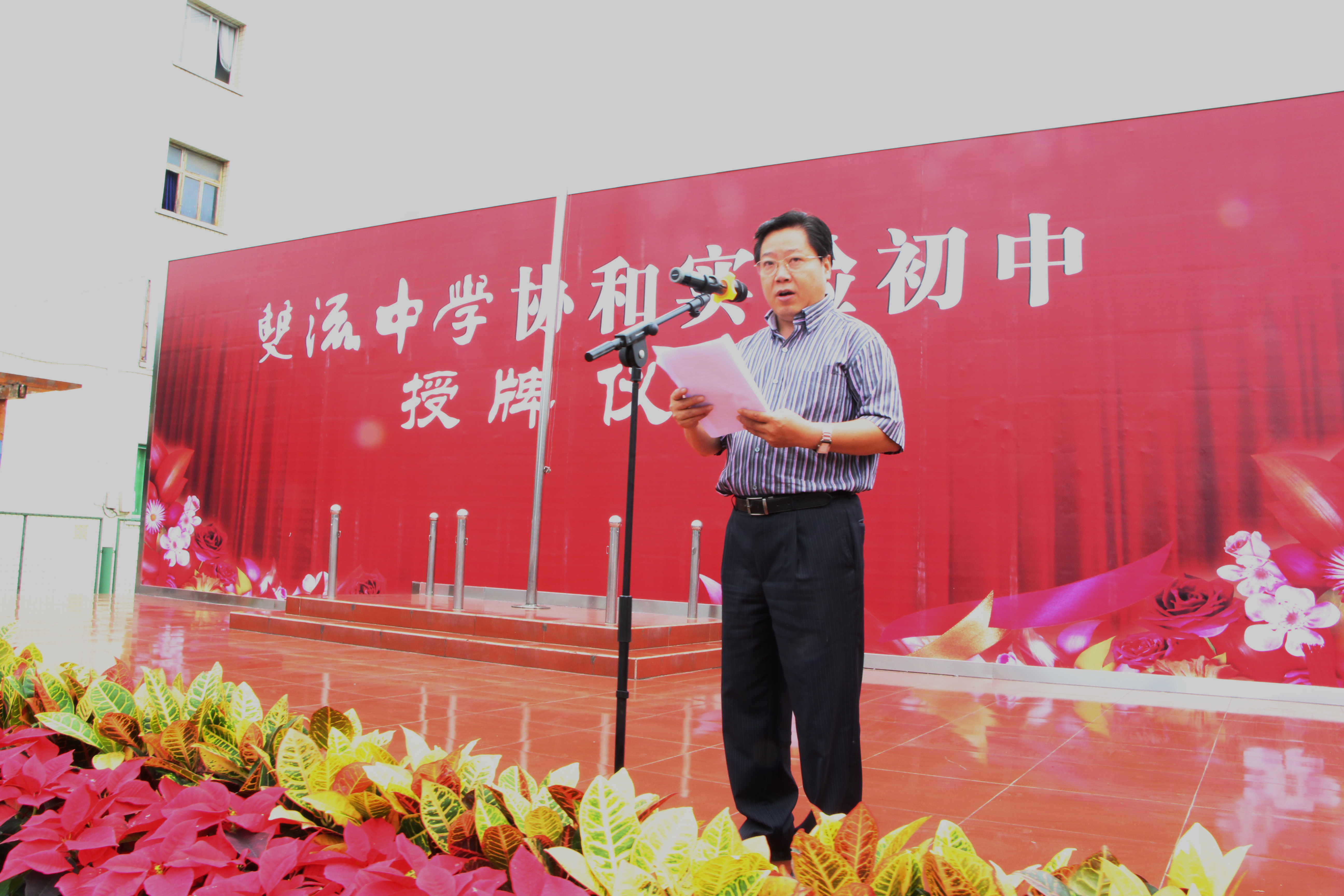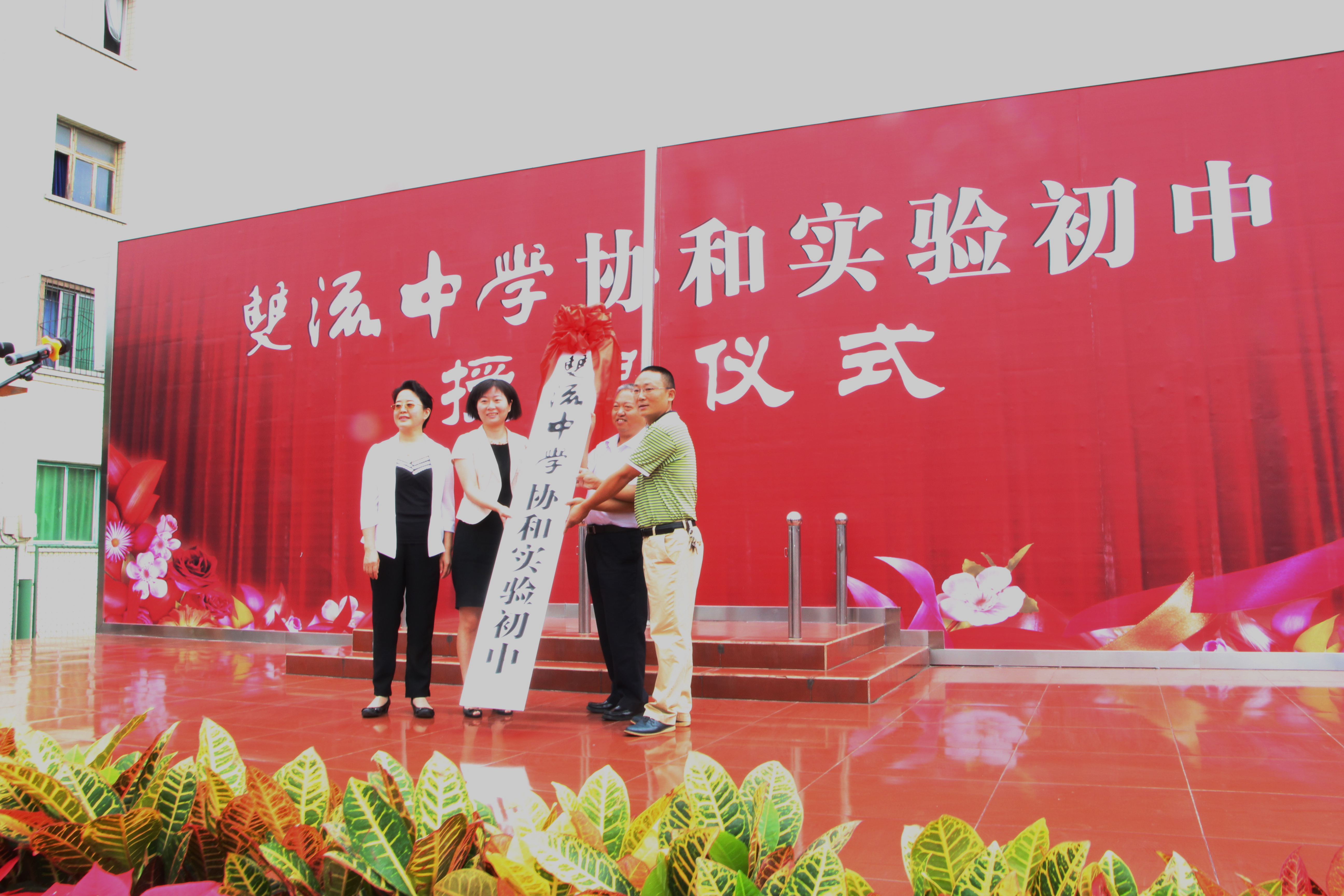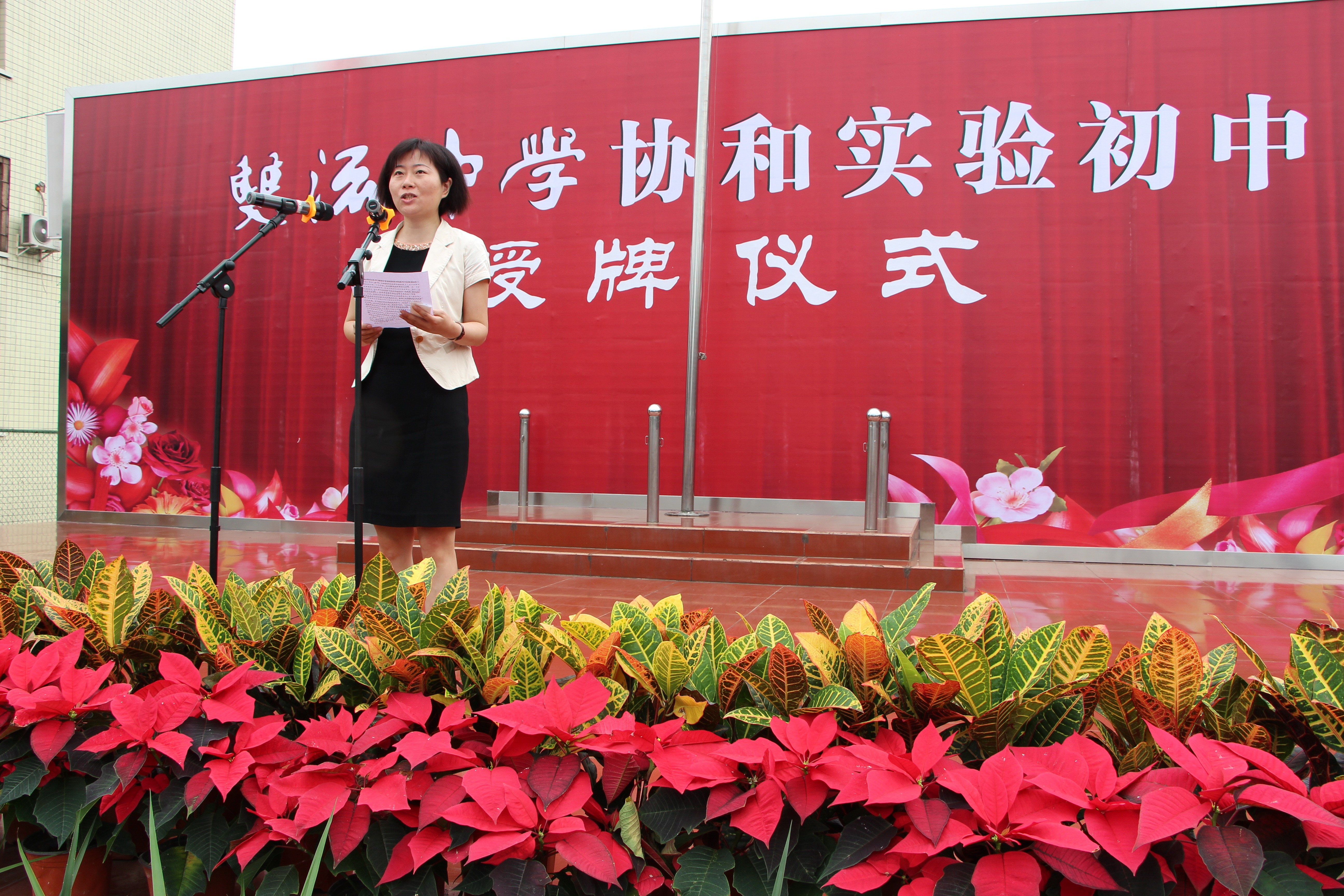 儀式活動開始由雙流縣教育局局長謝正英宣布更名通知,再由雙流縣副縣長萬琳、雙流縣教育局局長謝正英授牌,雙流中學校長熊偉、雙流中學協(xié)和實驗初中校長彭春暉接牌。由此,以前的協(xié)和初級中學正式更名為雙流中學協(xié)和實驗初中。