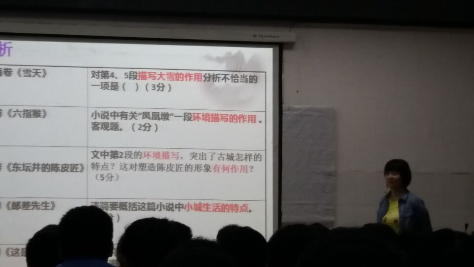 首先,雙流中學(xué)伏曉玲、陳曉嬌兩位語文老師分別獻(xiàn)上了題為《小說閱讀之環(huán)境描寫的作用》《議論文中的記敘》的研討課。付老師的課從“溫固”到“歸納提升”再到“合作探究”“課堂小結(jié)”目標(biāo)明確、思路清晰,整個(gè)教學(xué)過程有條不紊,重點(diǎn)突出,有效地完成了教學(xué)目標(biāo)。陳老師的課,圖文并茂,生動(dòng)形象,貼近學(xué)生生活的事例調(diào)動(dòng)了學(xué)生的積極性。學(xué)生思路活躍,課堂張弛有度,精彩紛呈,給老師們留下了深刻的印象。研討課結(jié)束后,雙流縣高中語文學(xué)科帶頭人何文焰等幾位教師相繼發(fā)言,對(duì)所聽的兩堂課作了中肯精彩的點(diǎn)評(píng),既指出了優(yōu)點(diǎn),也提出了寶貴的建議。