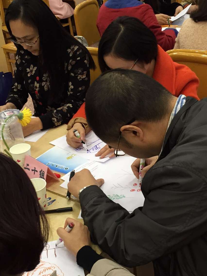 最后,來自棠湖外國語學(xué)校的張平秋老師為主訓(xùn)老師,雙流心育的十二名助教老師帶著全體參會(huì)老師做了主題為《向木問心》的團(tuán)體繪畫體驗(yàn)式輔導(dǎo)。此次繪畫輔導(dǎo)聚焦教師的職業(yè)成長:畫木問心——了解當(dāng)下我所處的職業(yè)環(huán)境; 添木問心——組員幫忙在圖畫上進(jìn)行添加,體驗(yàn)同伴互助的力量;省木問心——對(duì)添加完畢的畫作做新的解讀,獲得全新的職業(yè)認(rèn)同和職業(yè)感受;說木問心——推選組內(nèi)畫作做分享,表達(dá)團(tuán)隊(duì)思想,在與其他老師進(jìn)行思想碰撞的時(shí)候進(jìn)一步提升自己在職業(yè)上的團(tuán)隊(duì)歸屬感。