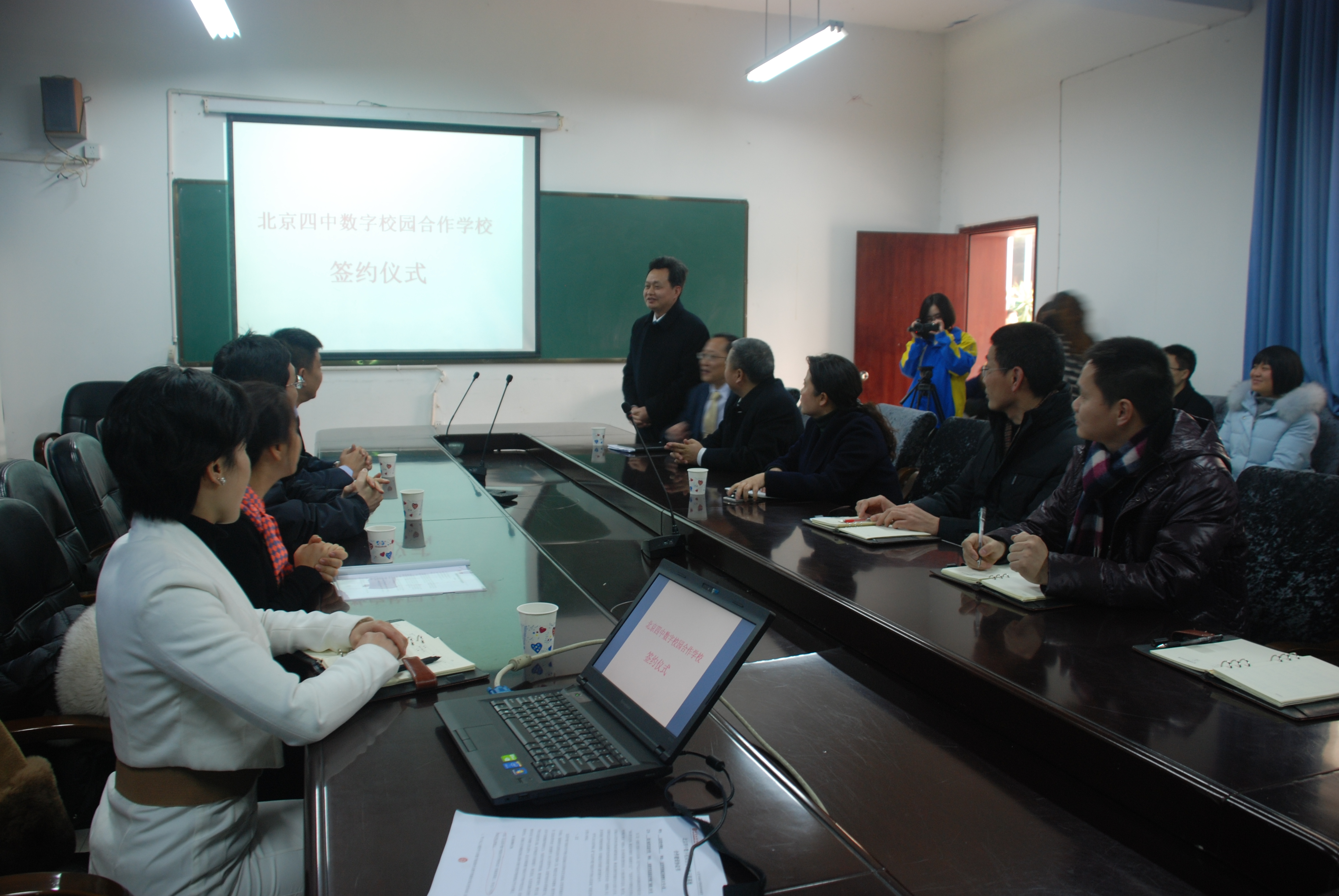 會上,北京四中網(wǎng)校高鈞校長向大家介紹了北京四中網(wǎng)校的成立背景、目的、網(wǎng)校運作模式和教學方式,也表達了與雙流中學合作辦學共同發(fā)展的愿望。