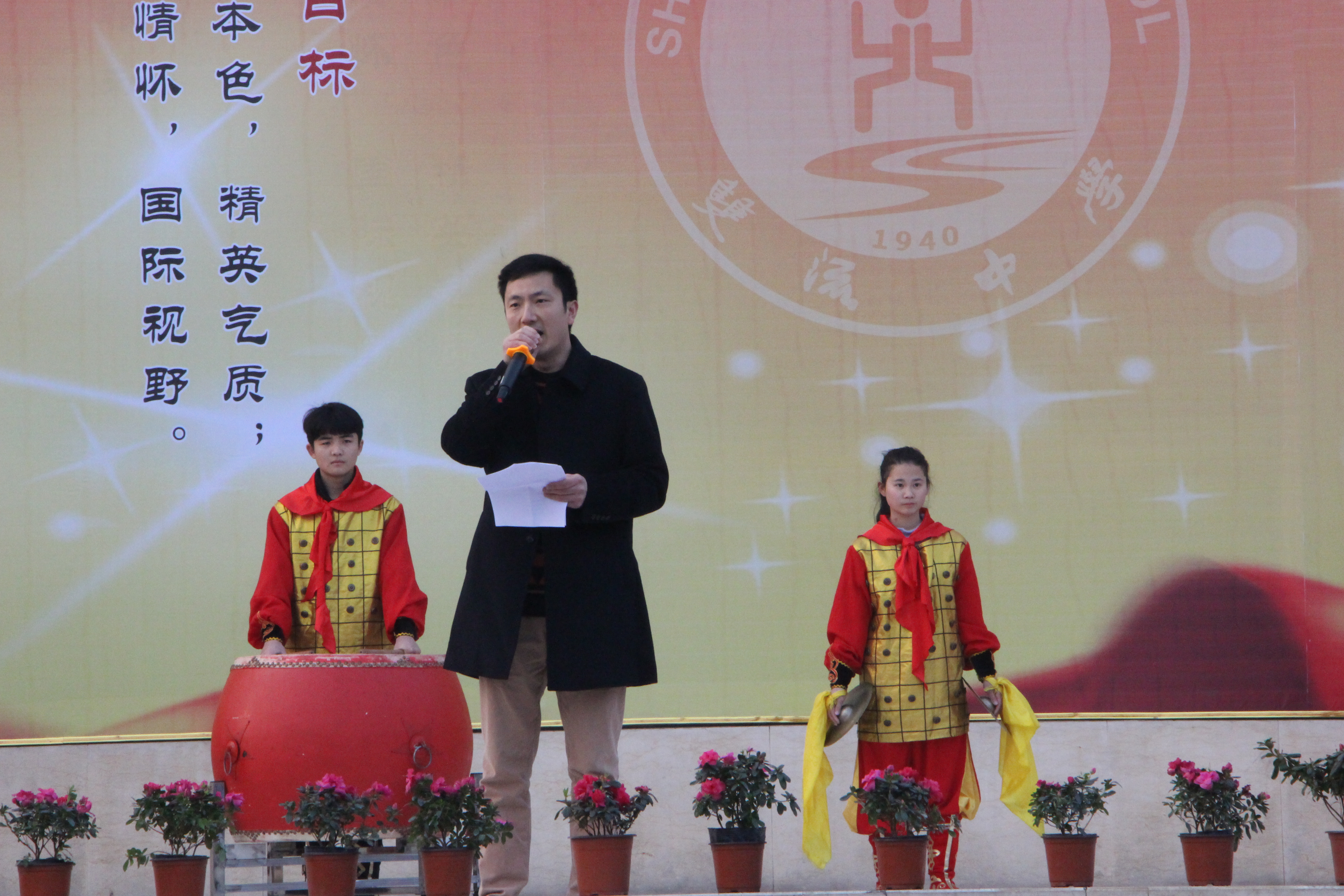 大會由高三年級組長毛有裕老師主持。教師代表金兵老師做了精彩演講,他代表全體高三教師表示將“甘將心血化時雨,潤出桃花一片紅”,鼓勵同學們“拼搏一百天,讓小宇宙在六月盡情燃燒!”