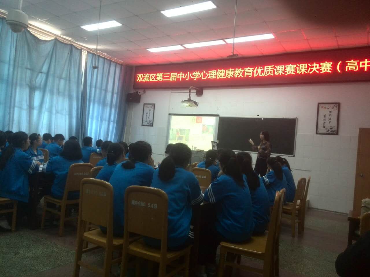 2016年4月20日,雙流區(qū)第三屆心理健康優(yōu)質(zhì)課賽決賽在雙流中學(xué)多功能三廳舉行。雙流區(qū)各中學(xué)專兼職心理教師、四川師范大學(xué)心理學(xué)專業(yè)部分研究生參加了會議。此次賽事由雙流區(qū)教師教育發(fā)展研究中心心理健康教研員陳麗老師主持。此次賽課主題為“高中生生涯規(guī)劃”,分為初賽和決賽兩個環(huán)節(jié)。初賽賽課程設(shè)計,在評選出優(yōu)秀的課程設(shè)計之后再進行現(xiàn)場賽課。
