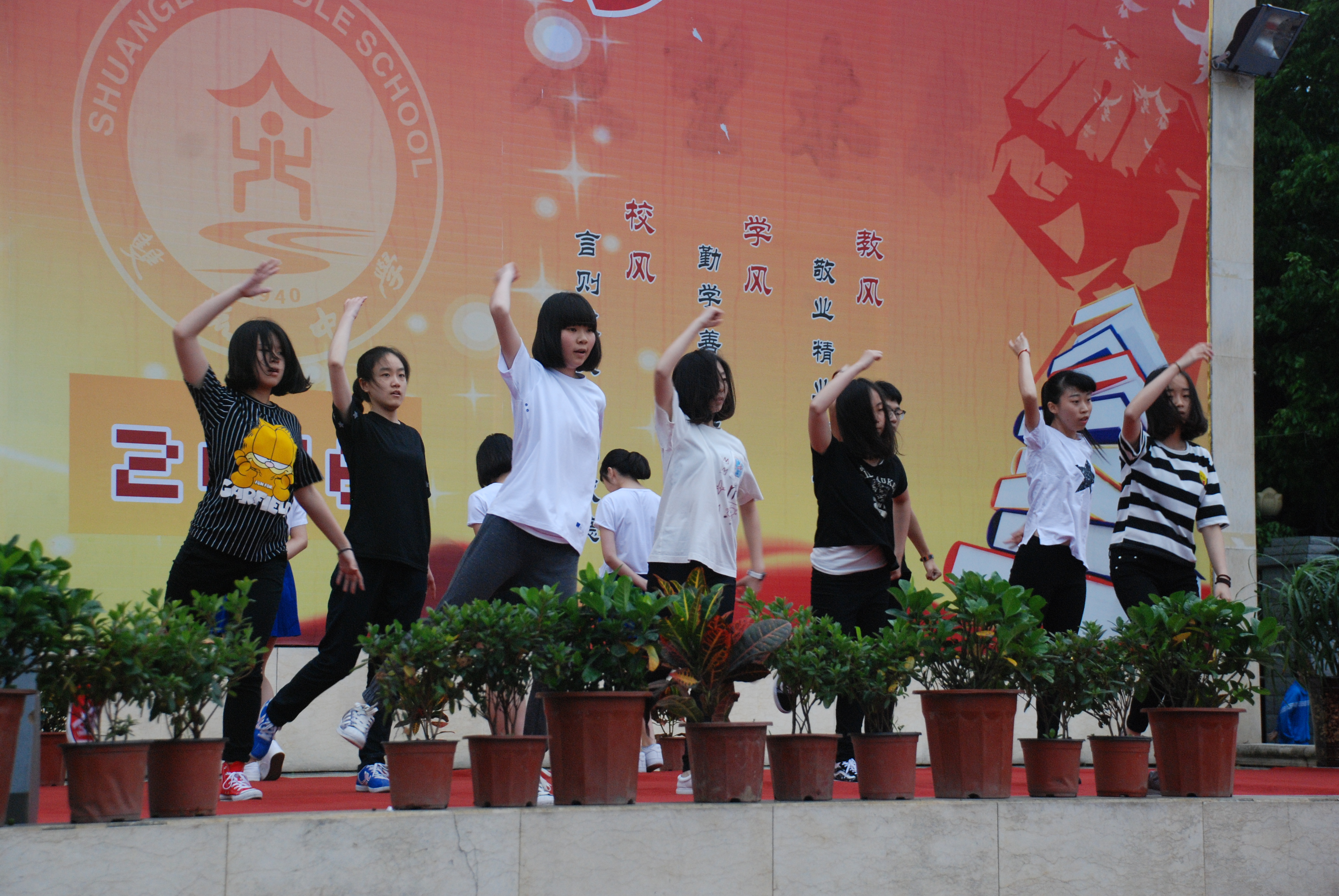 典禮在雙中舞蹈社的煥發(fā)著火熱青春的舞蹈《run away baby》中拉開了帷幕。三年前因?yàn)閴粝胂嗑垭p中,如今為了遠(yuǎn)方即將別離,三年里,是老師的辛勤付出、耐心講解、細(xì)心陪伴教會(huì)了學(xué)生知識(shí),教會(huì)了學(xué)生做人,還有學(xué)校后勤工作人員的辛苦操勞保障了學(xué)生安心學(xué)習(xí)的環(huán)境。在離別之際,學(xué)生們用鮮花和鞠躬表達(dá)著對(duì)老師和職工的感恩和敬意。教師代表李玲老師表達(dá)了對(duì)學(xué)生的依依不舍、殷切期盼和美好祝福,“畢業(yè)對(duì)你們來說,僅僅是人生旅途的一個(gè)重要驛站,它并不代表‘結(jié)束’,而是人生新的‘開始’?!?“你們要承擔(dān)起‘責(zé)任’, 你們要擁有‘愛心’, 你們要熱愛‘學(xué)習(xí)’?!弊8kp中學(xué)子夢想成真,前程似錦!