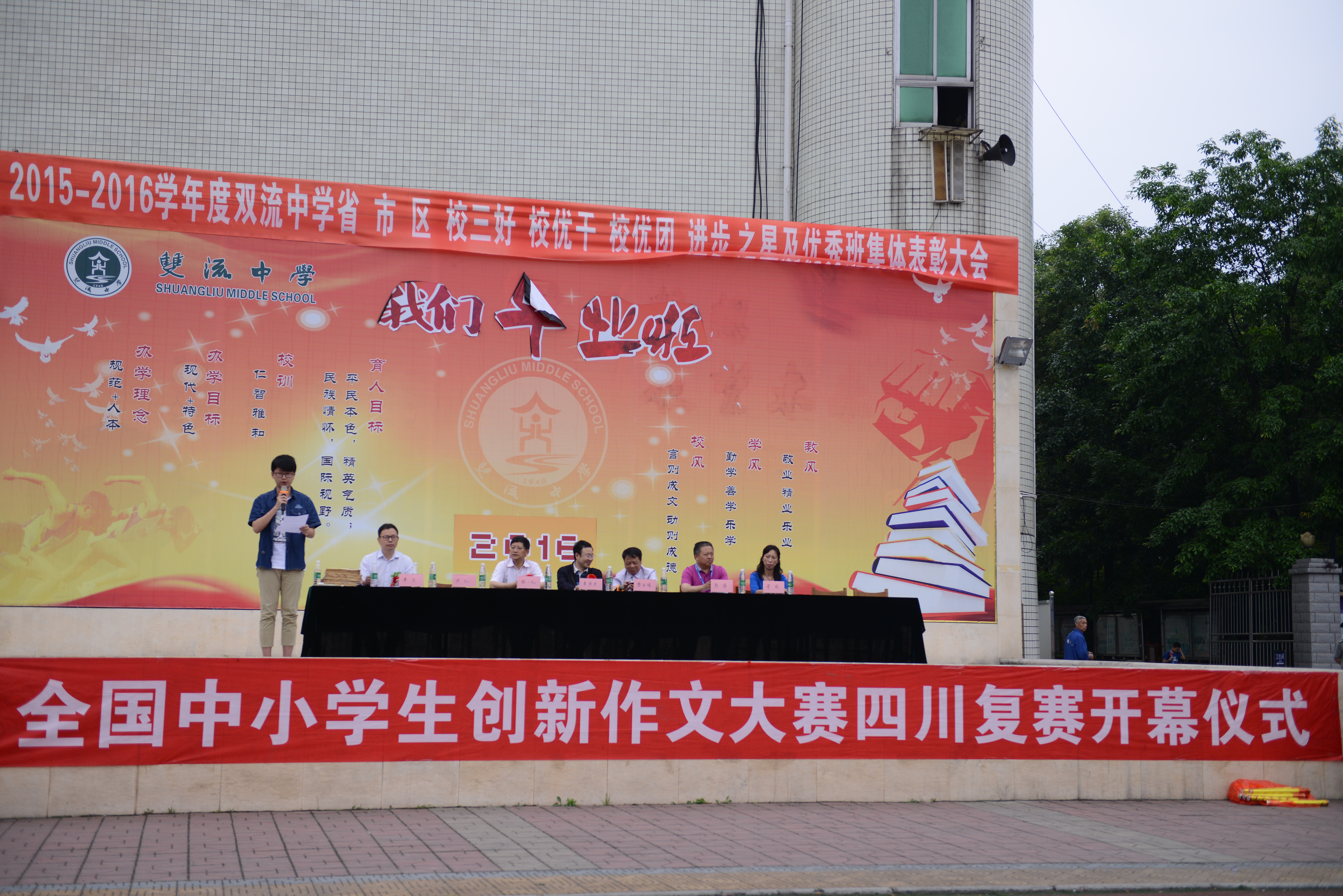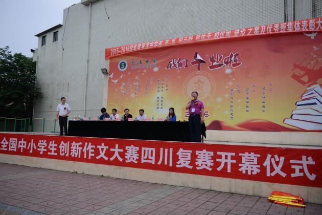 大賽前舉行了隆重的開幕儀式,開幕式由全國中小學生創(chuàng)新作文大賽組委會秘書長廖東先生主持,出席開幕式的有四川省雙流中學校長熊偉先生、四川省青少年作家協(xié)會主席黎正明先生、四川省教育學會辦公室主任譚曉先生、成都中語會秘書長程一凡先生和全國語文學習科學專業(yè)委員會副理事長李華平教授。
