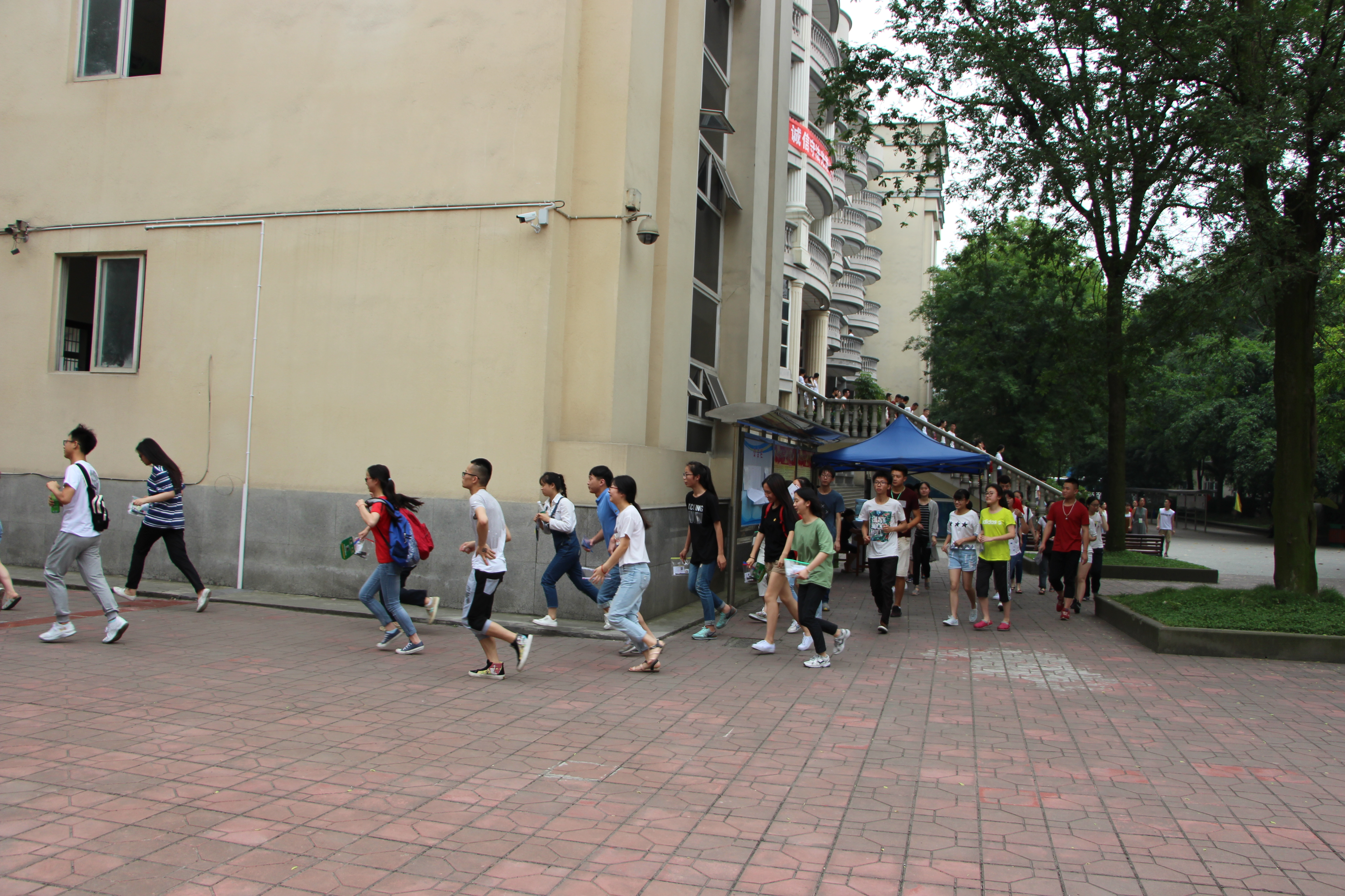 下午,高考考生在監(jiān)考老師的組織下熟悉了考場。針對我省地震頻發(fā)的情況,為了增強防震安全意識,提高應急疏散避險能力,確??忌踩?,進行了防震應急疏散演練活動。整個演練過程既緊張、迅速,又有條不紊、井然有序,大大提高了防震減災的意識。