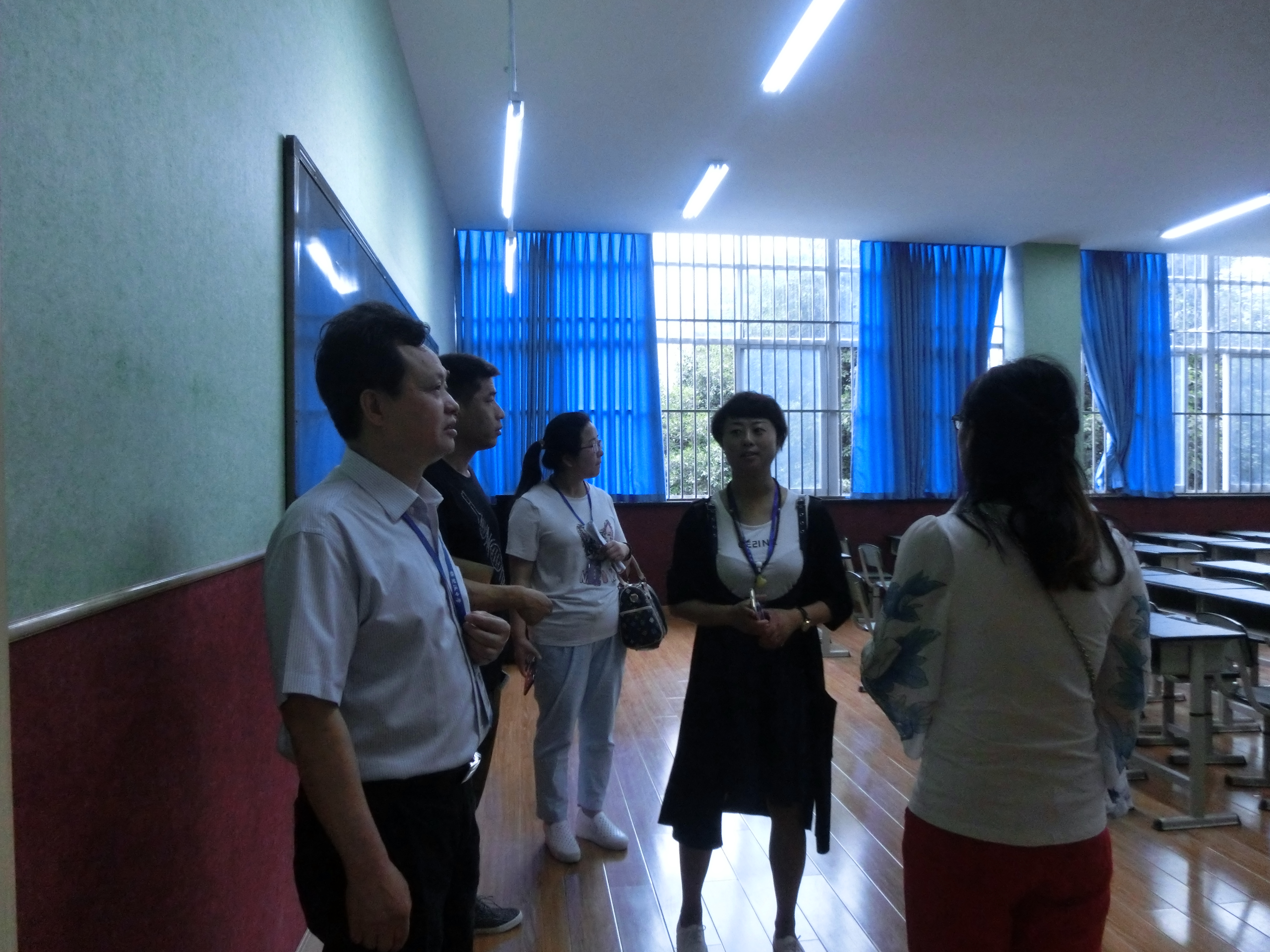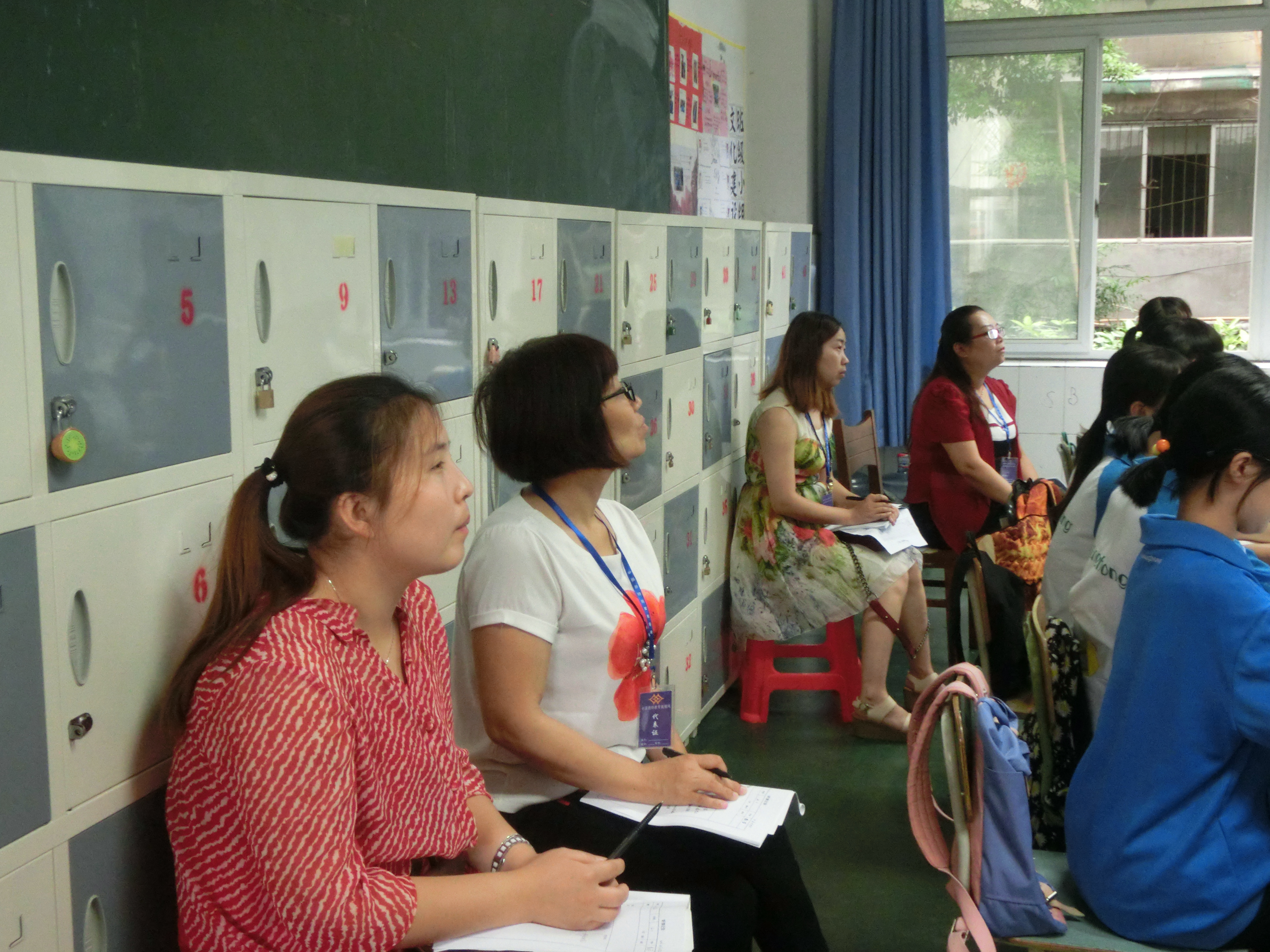 考察團到達之后,頓時被雙中的美麗環(huán)境所吸引,紛紛合影留戀??疾靾F此次前來,更是慕雙中的教學效果之名而來,所以隨著第一節(jié)下課鈴聲響起,60余名老師按照課表選擇自己想要聽的課。他們坐在教室的后面認真記著筆記,課后又與任課老師積極交流意見。