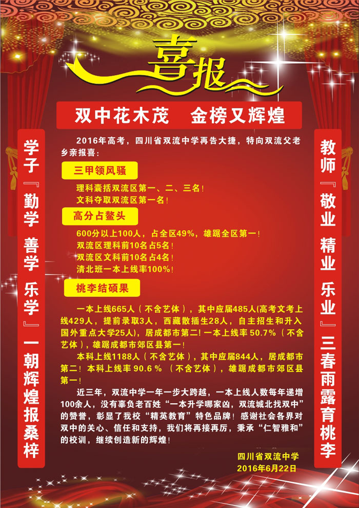2016年高考,四川省雙流中學(xué)再告大捷,特向雙流父老鄉(xiāng)親報(bào)喜: