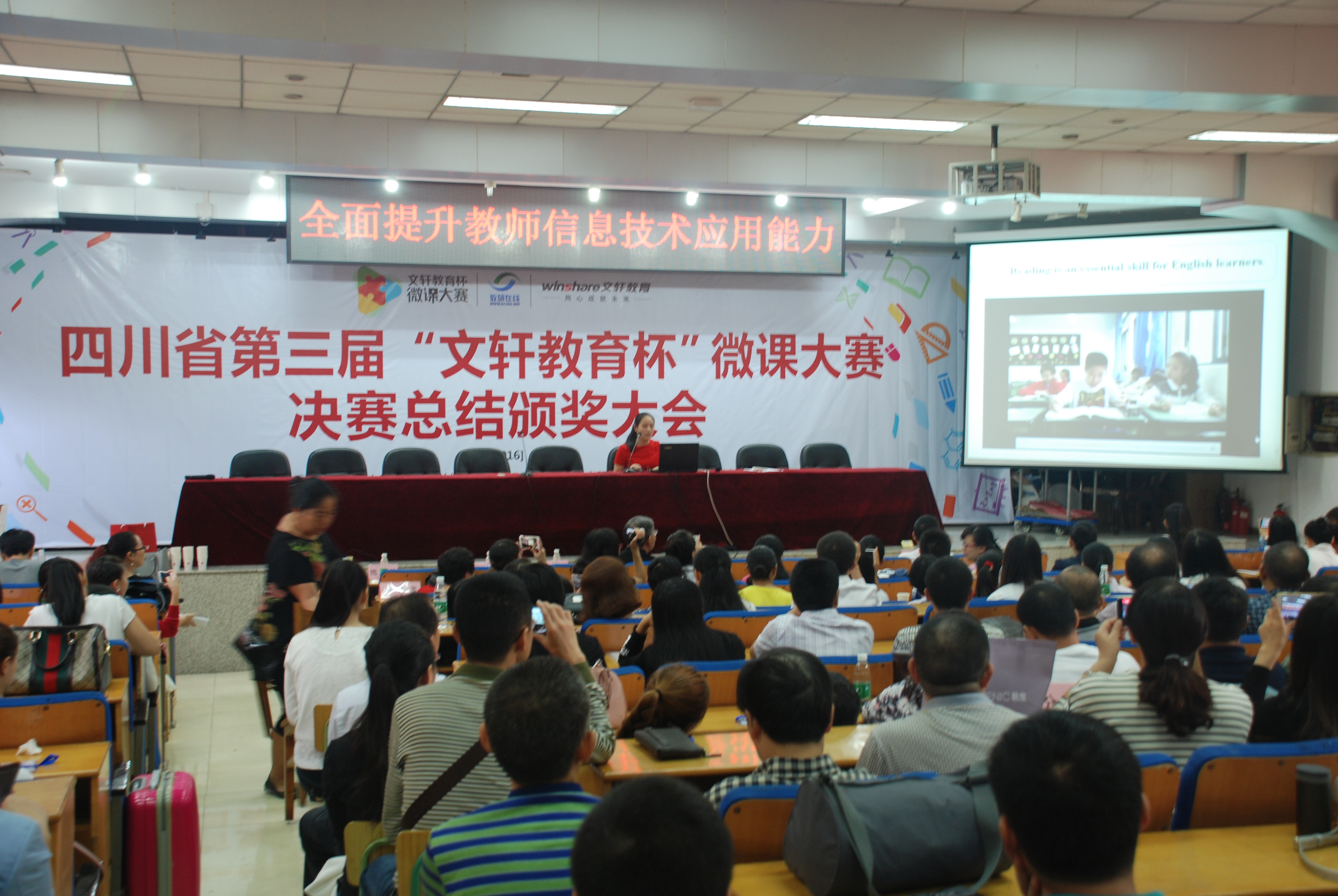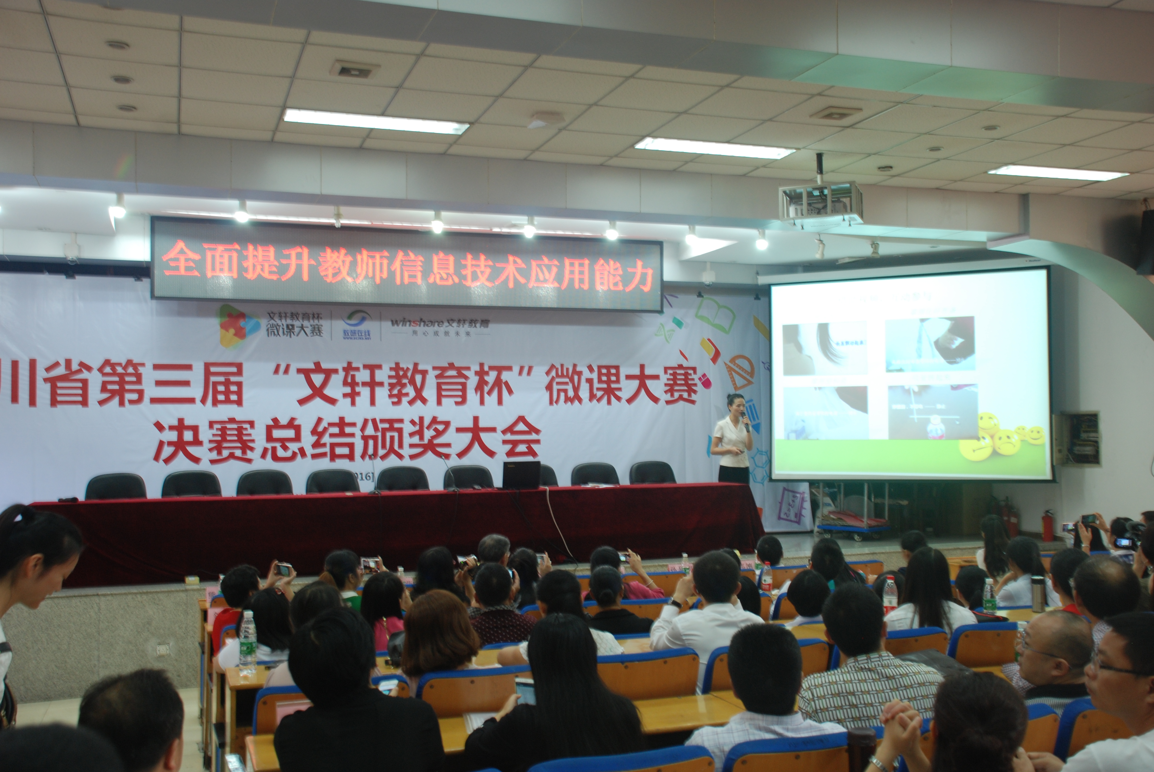 2016年9月28日——30日,四川省第三屆“文軒教育杯”微課大賽決賽在雙流中學(xué)成功舉辦。本屆大賽由四川省教育科學(xué)研究所主辦,新華文軒出版?zhèn)髅焦煞萦邢薰緟f(xié)辦,四川省雙流中學(xué)承辦。本屆大賽決賽是在今年5月19號在雙流中學(xué)舉辦的四川省第三屆“文軒教育杯”微課大賽培訓(xùn)基礎(chǔ)上對參培老師所做微課作品的一個(gè)現(xiàn)場展示評比。來自全省各市州的小學(xué)科學(xué)、初中英語、高中語文、中職學(xué)前教育四個(gè)學(xué)科的近200名進(jìn)入決賽的教師參賽,省、市各學(xué)科的專家領(lǐng)導(dǎo)擔(dān)任此次活動的評委。