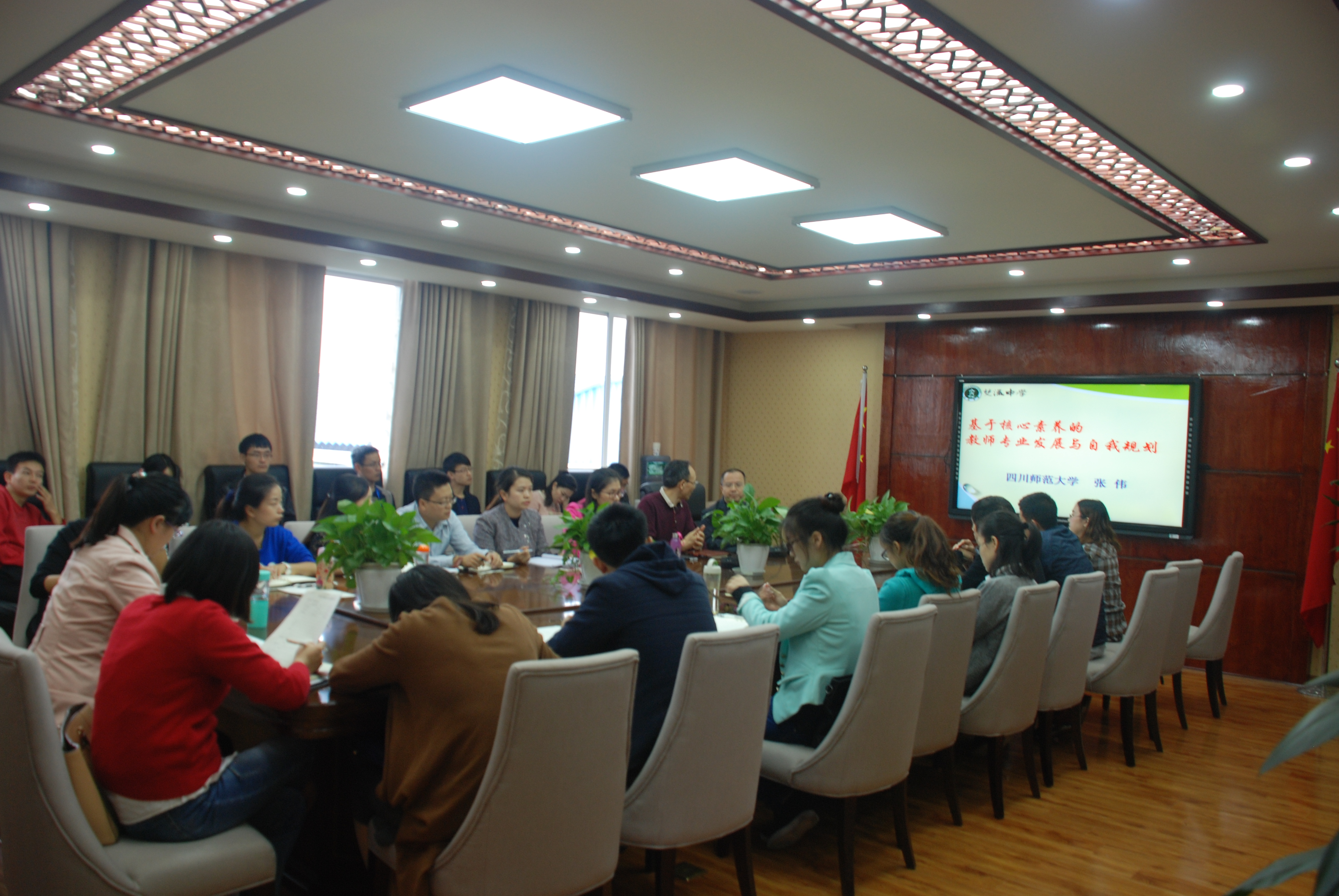 為了讓雙流中學(xué)的老師樹立愿景,做好人生規(guī)劃,成為專家型教師,2016年10月10日下午,雙流中學(xué)邀請到了四川師范大學(xué)張偉教授2010年-2015年進(jìn)入雙中的青年教師召開了主題為“基于核心素養(yǎng)的教師專業(yè)發(fā)展與自我規(guī)劃"的培訓(xùn)會(huì)。