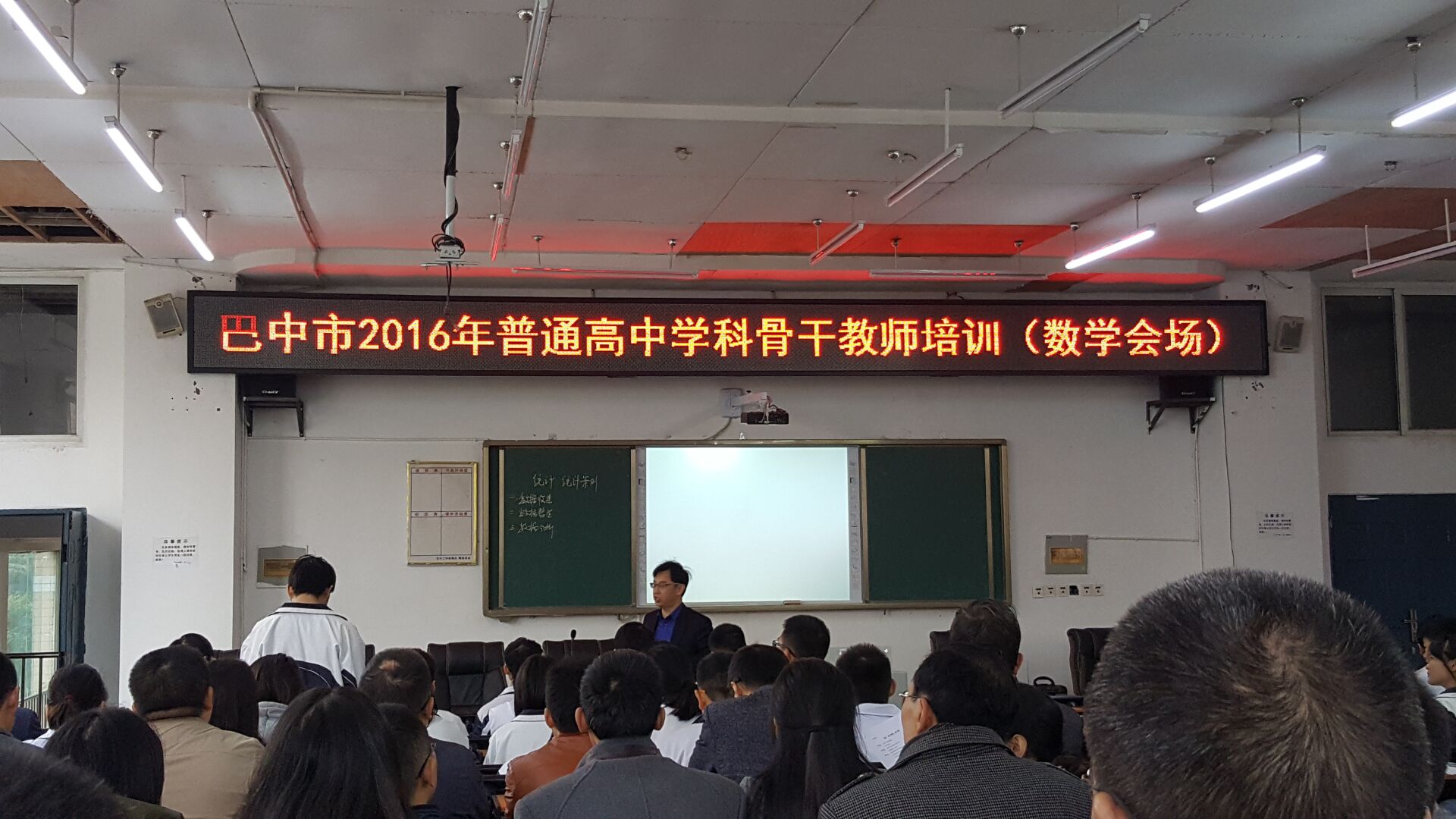 2016年11月4日,雙中數(shù)學(xué)教師曹軍才,受省教科所的委派和巴中市教科所的邀請(qǐng),前往巴中市為“巴中市2016年普通高中學(xué)科(數(shù)學(xué))骨干教師培訓(xùn)”上了一堂精彩的示范課,并作了2017屆高三數(shù)學(xué)備考策略專題發(fā)言。 會(huì)議在巴中二中舉行,參會(huì)的有省數(shù)學(xué)教研員、巴中市的區(qū)縣數(shù)學(xué)教研員和數(shù)學(xué)骨干教師。曹老師選取了回歸全國高考后需要重點(diǎn)研究的一個(gè)版塊內(nèi)容“統(tǒng)計(jì)統(tǒng)計(jì)案例”作了一個(gè)小專題復(fù)習(xí)課展示,得到與會(huì)師生的熱烈掌聲;隨后,曹老師還作了題為《團(tuán)結(jié)創(chuàng)新,關(guān)注變化,務(wù)實(shí)前行》的專題發(fā)言,就2017屆的備考工作與老師們進(jìn)行了交流。