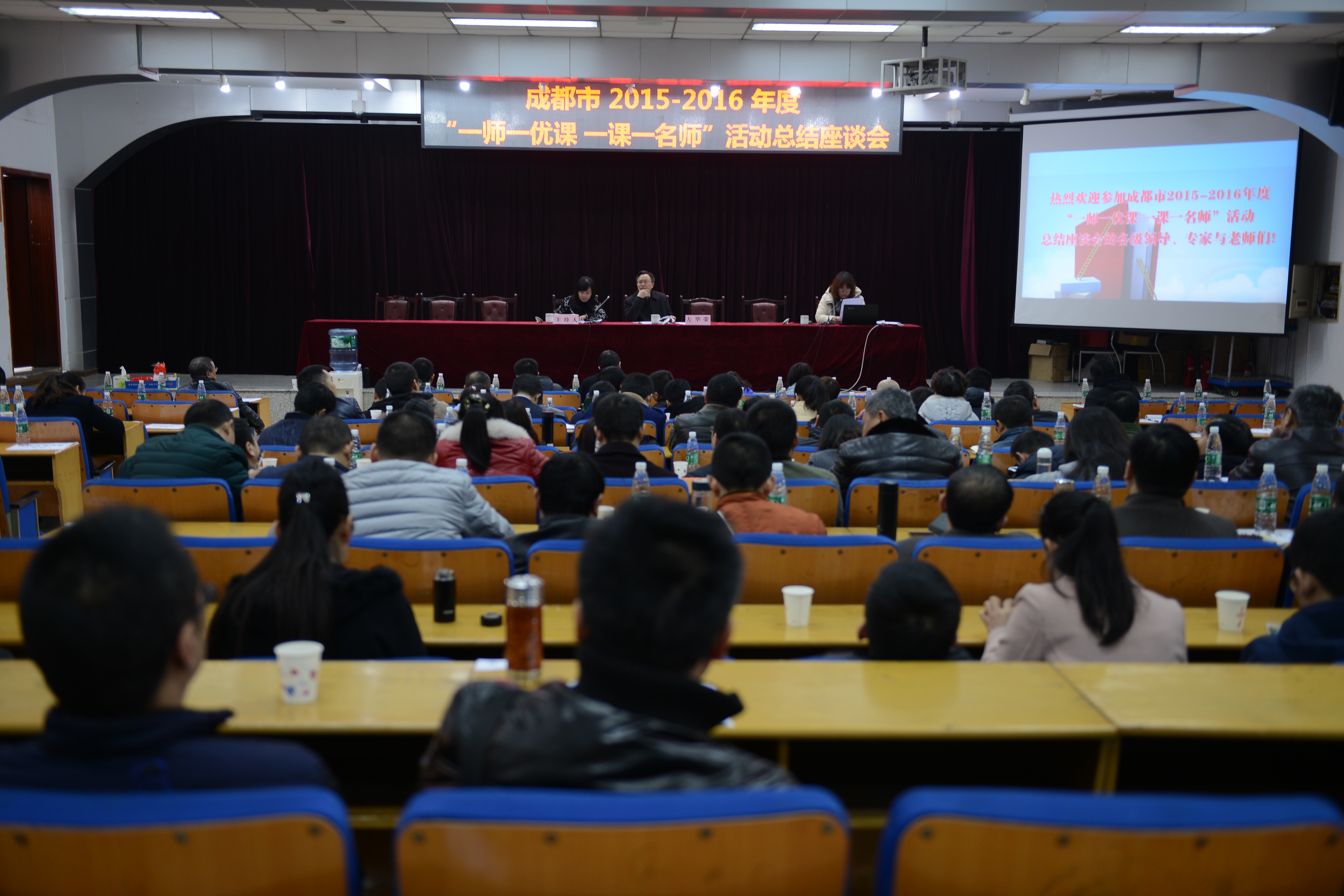 為總結(jié)2016年度“一師一優(yōu)課、一課一名師”工作,加強統(tǒng)籌協(xié)調(diào),不斷提高組織管理水平,提高教師應(yīng)用信息技術(shù)與學(xué)科教學(xué)深度融合能力水平,提高課堂教學(xué)效益,2016年12月8日,成都市2015—2016年度“一師一優(yōu)課一課一名師”活動總結(jié)座談會在雙流中學(xué)隆重召開。市教育局分管局長左華榮,市教育局發(fā)展規(guī)劃處(信推辦)、普教一處、普教二處、市技裝中心、市教科院、市直屬(直管)學(xué)校(各校區(qū))、教學(xué)教研及教育信息化的分管領(lǐng)導(dǎo),及區(qū)(市)縣教育部門相關(guān)科室、教研部門、電教技裝部門相關(guān)工作負責(zé)同志及工作人員參加了此次座談會議。