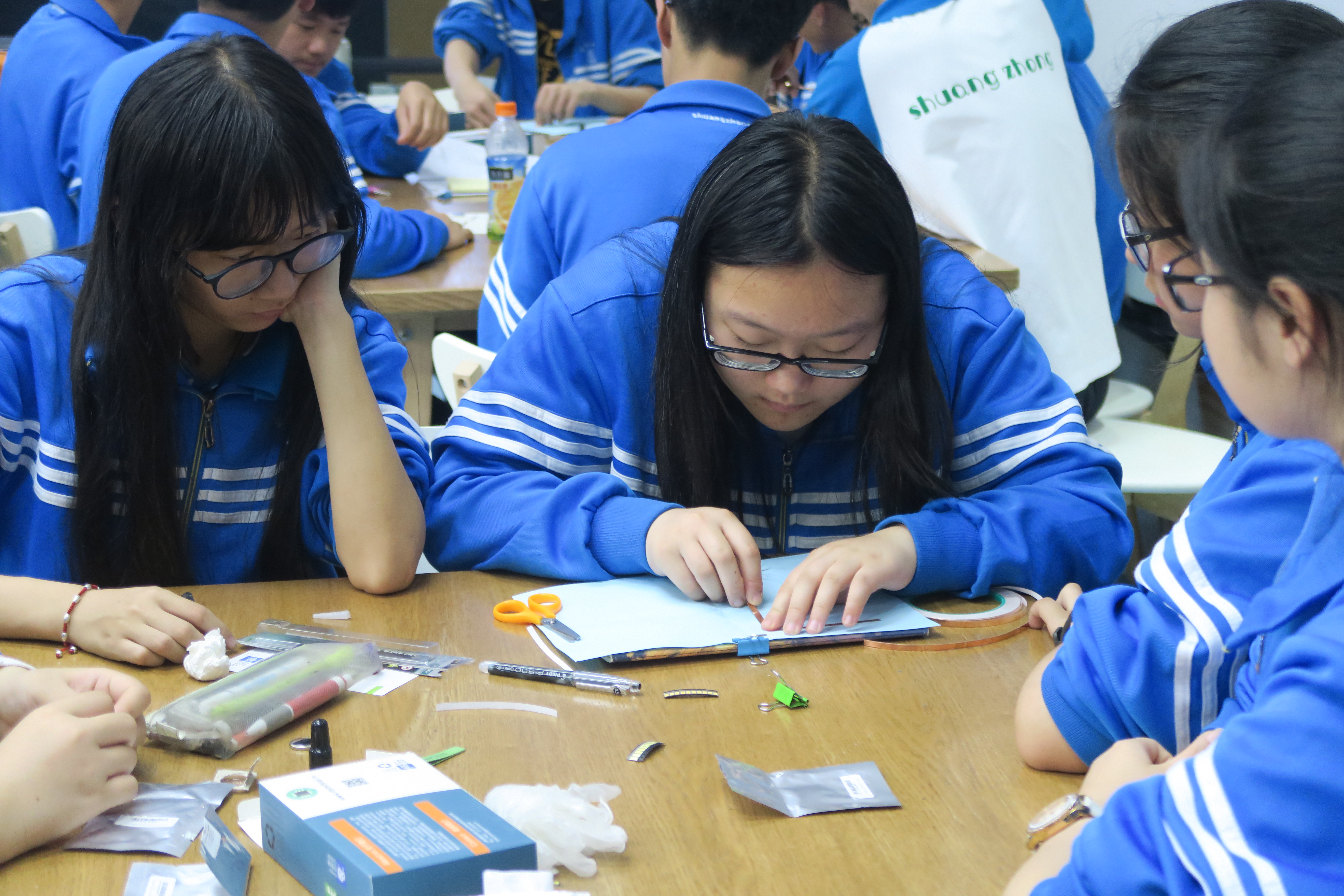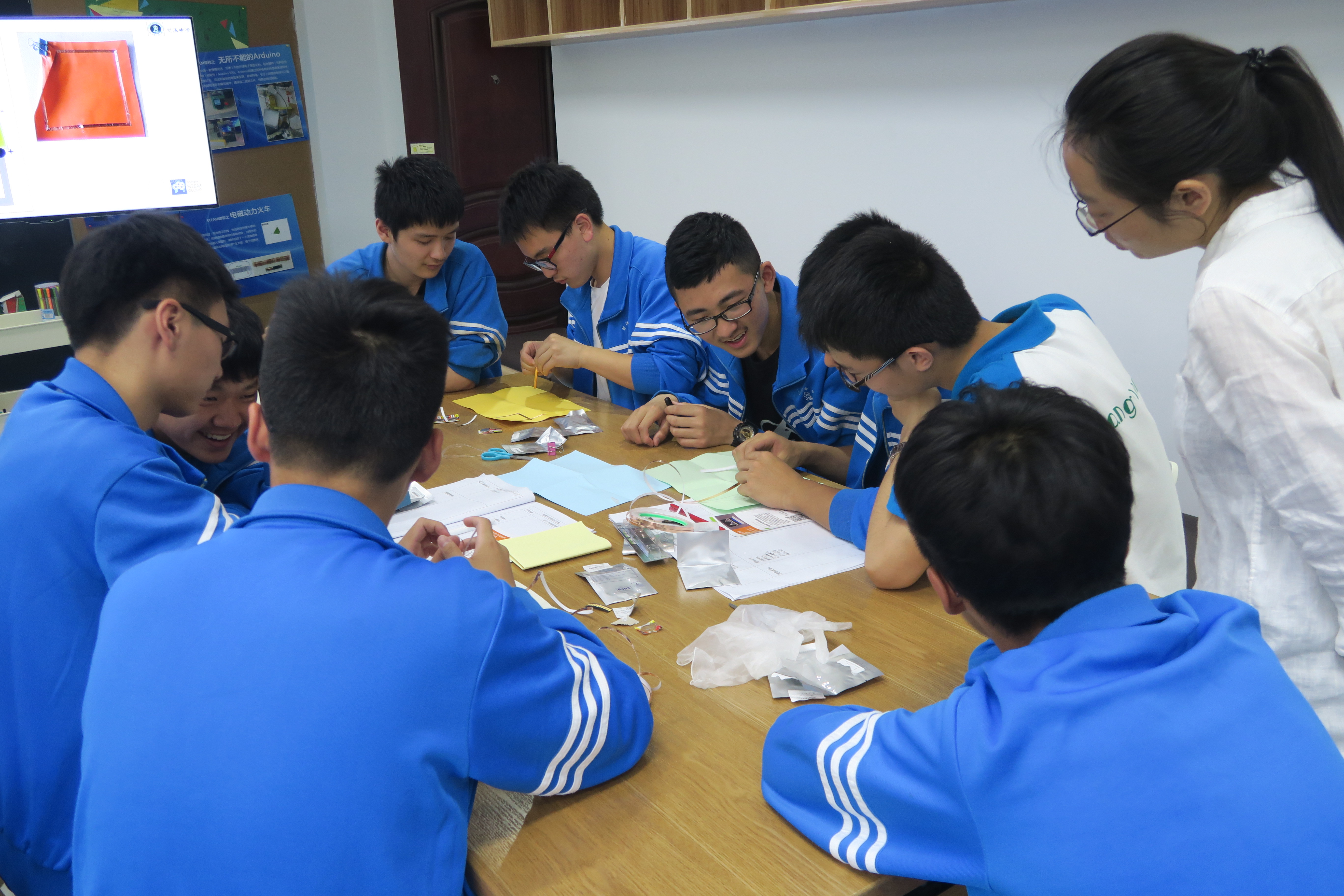 講座之后,雙流中學信息技術教師陳覓,為大家展示了一堂以STEAM教育方法開展實施的校本選修課例《創(chuàng)意電子互動媒體應用》。課程以元旦晚會節(jié)目創(chuàng)意為導入,將創(chuàng)意熒光服飾制作作為課程研討項目,通過提出問題、聚焦問題、探討研究計劃、項目背景研討等的課程實施流程,完整展示了一堂STEAM課程的實施過程。