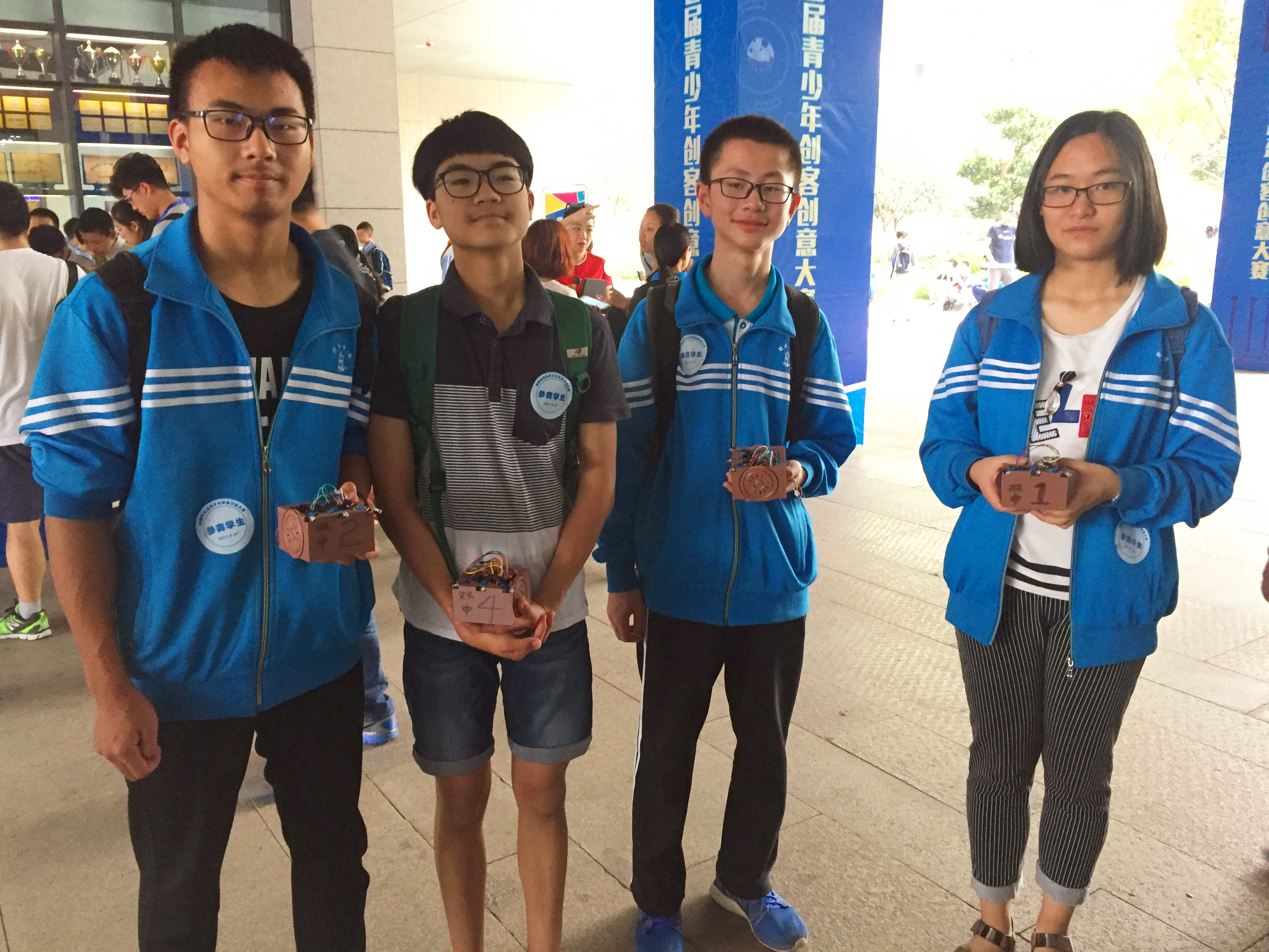 2017年5月20日,成都市首屆青少年創(chuàng)客創(chuàng)意大賽盛大舉行,來(lái)自全市的1500余名中小學(xué)生參加此次比拼。來(lái)自于雙中科技創(chuàng)新班和Arduino校本選修課的羅書豪、鄒浩等7位同學(xué)代表雙中參加了此次大賽。