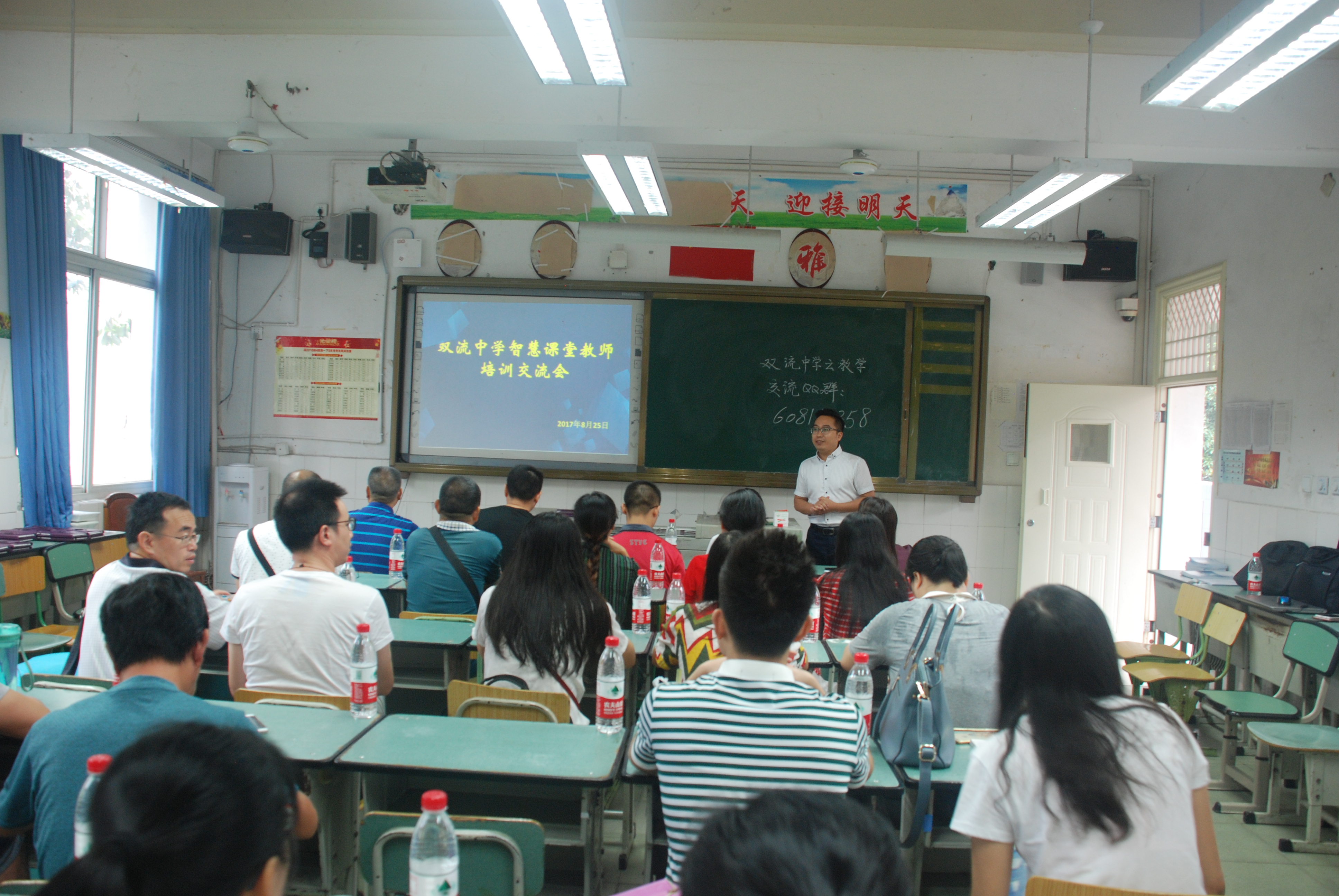 雙流中學(xué)從本學(xué)期開始,將在高一年級全面推行智慧課堂教學(xué)。為保智慧課堂教學(xué)活動的正常進(jìn)行,雙流中學(xué)2017825--28日對全年級教師進(jìn)行為期四天的全員培訓(xùn),并將對參培老師進(jìn)行考核。825日上午9:00,培訓(xùn)活動正式開始,雙流中學(xué)熊偉校長圍繞著“教育現(xiàn)代化”這一主題發(fā)表了熱情揚(yáng)溢的動員講話。全體教師認(rèn)真聆聽、現(xiàn)場操作、現(xiàn)場收獲。我們相信,智慧課堂不僅能進(jìn)一步調(diào)動教師的工作熱情,也能進(jìn)一步激發(fā)學(xué)生的學(xué)習(xí)熱情。