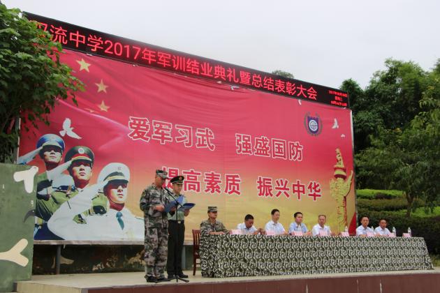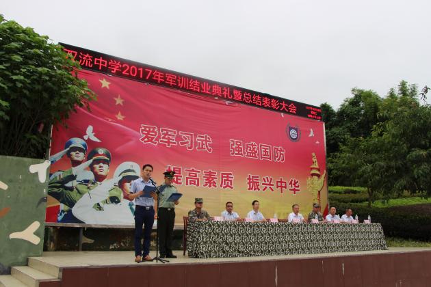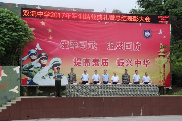 8月30日,四川省雙流中學(xué)高2017級高一新生軍訓(xùn)匯報(bào)表演暨總結(jié)表彰大會在訓(xùn)練基地隆重舉行。雙流中學(xué)黨總支書記、校長熊偉,副校長徐天福,德育處主任楊成林,行政辦副主任李衛(wèi)東,學(xué)導(dǎo)處副主任杜江濤,安衛(wèi)處副主任仇朝海,以及軍訓(xùn)基地領(lǐng)導(dǎo)何強(qiáng)、江驕出席此次大會。
