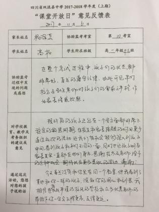 同學(xué)們在家長和老師的榜樣帶領(lǐng)下,認(rèn)真?zhèn)淇?、認(rèn)真考試。通過此次家長開放日活動,家長們都特別感觸,都有很多心里話想說給學(xué)校和孩子,本著“開放、合作”的精神,學(xué)導(dǎo)處提供了“課堂開放日”意見反饋表,很多家長通過此次活動,體驗(yàn)到了學(xué)校的管理與教學(xué),也感受到了孩子和老師的不容易,更說出了很多心里話。