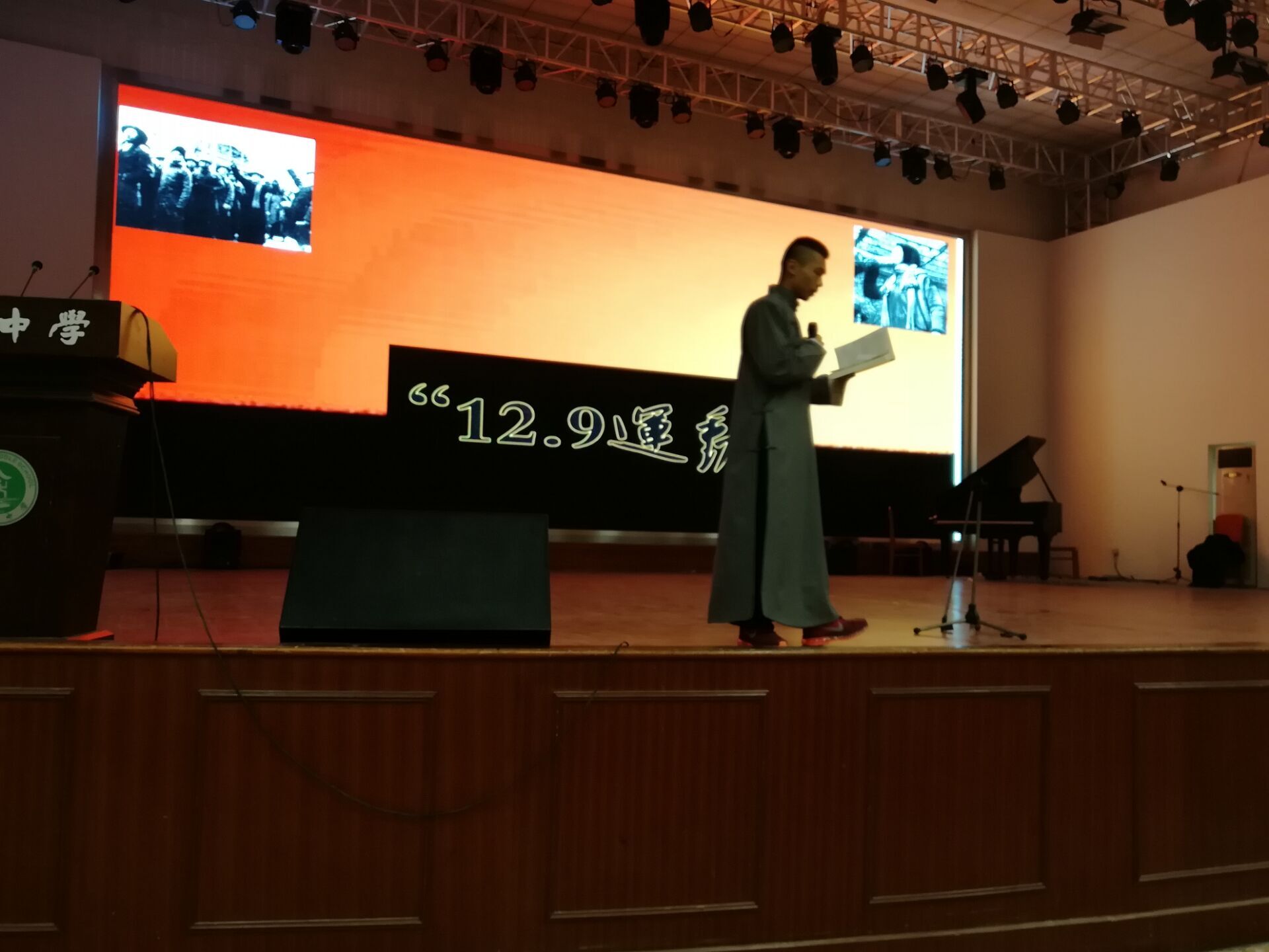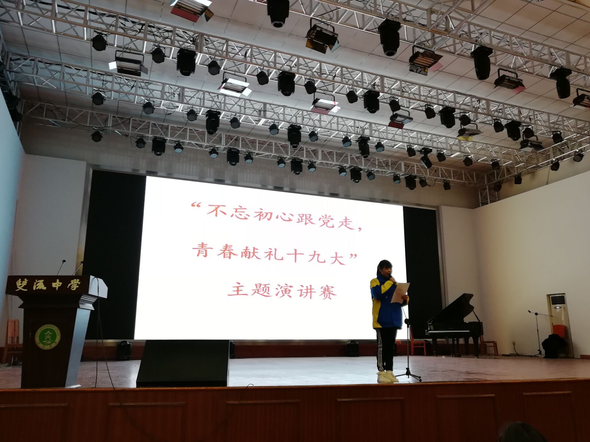 為了紀(jì)念82年前的“一二.九”愛(ài)國(guó)運(yùn)動(dòng),雙流中學(xué)于12月8日(本周五)晚上,在學(xué)校多功能一廳舉行了以“不忘初心跟黨走,青春獻(xiàn)禮十九大”為主題的演講比賽。